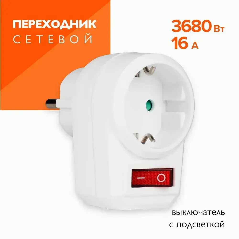 Переходник электрический JAZZway с выключателем AD-1GS