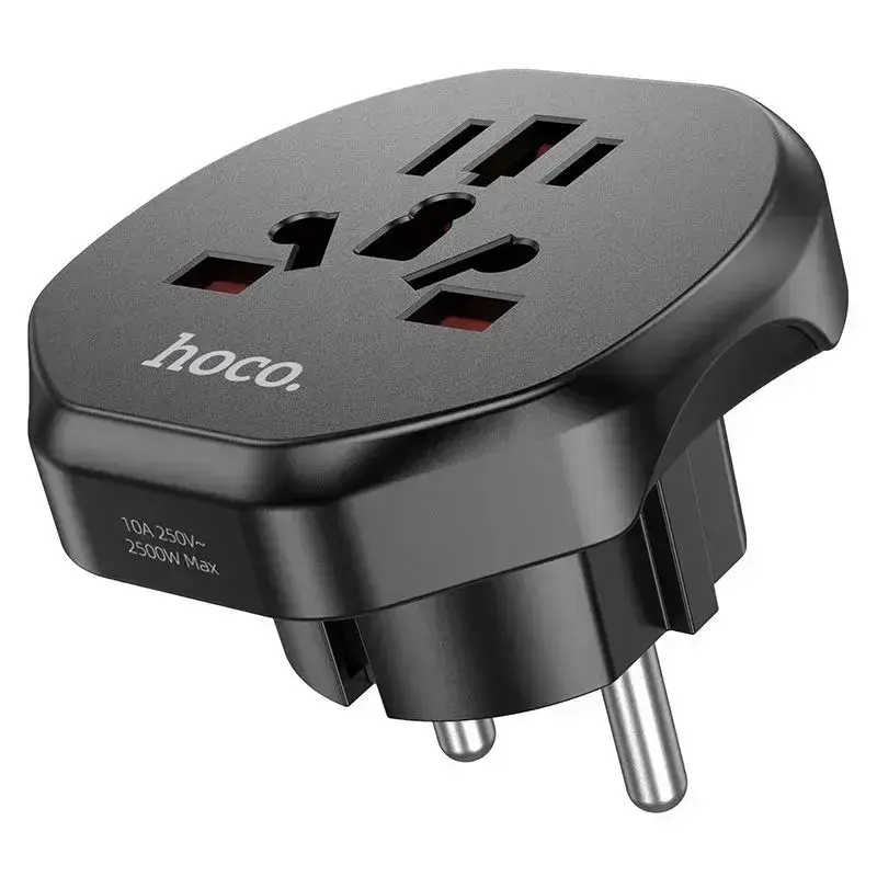 Переходник на евро вилку / Сетевой адаптер универсальный на все типы вилок / Hoco 10А 2500Вт