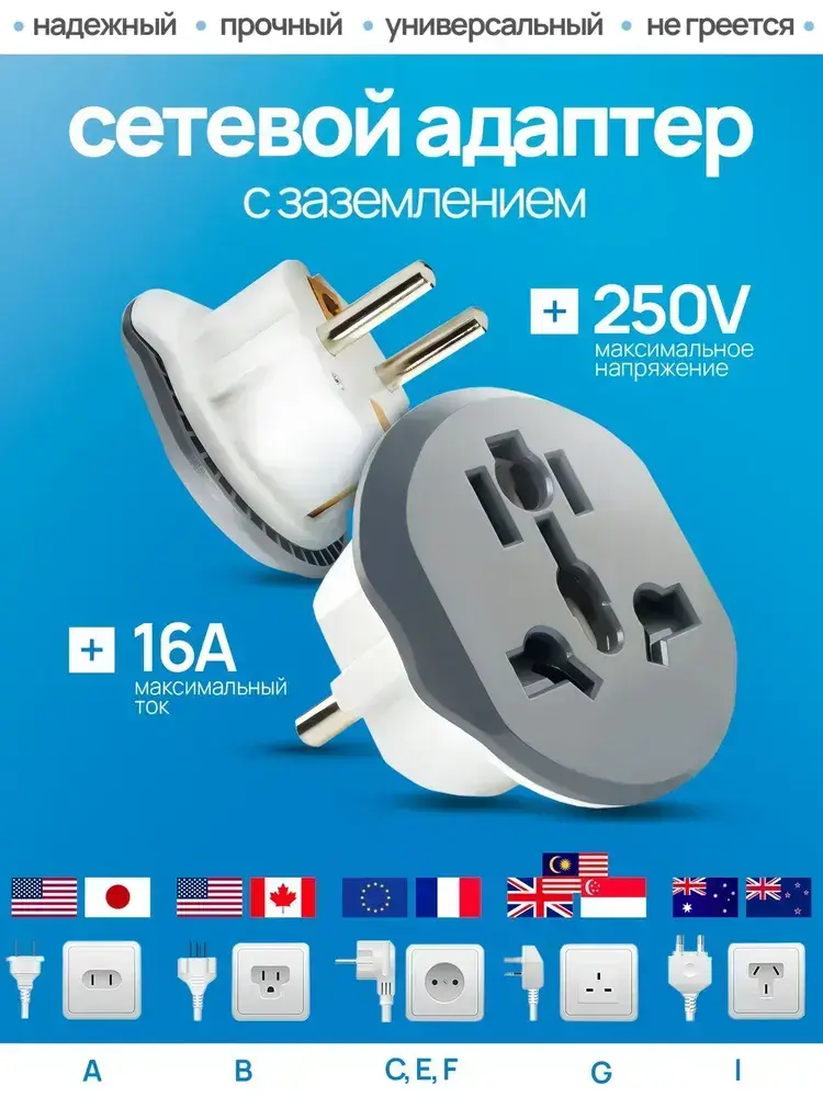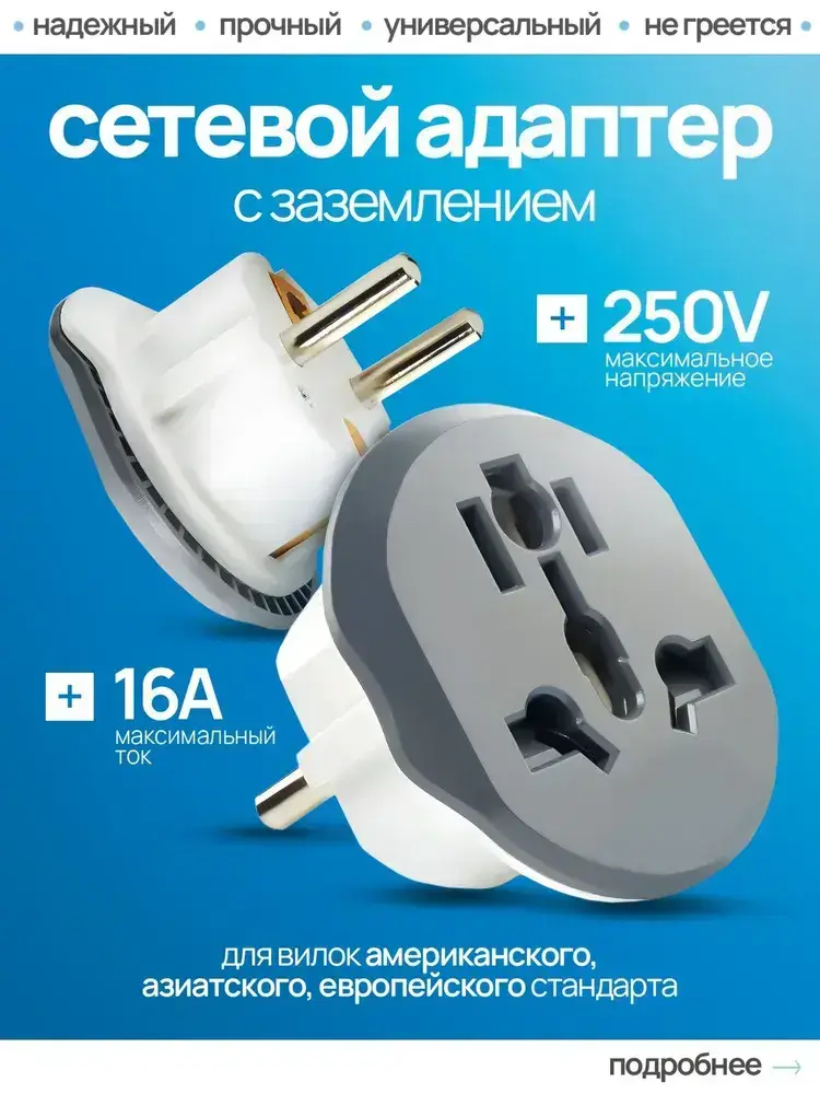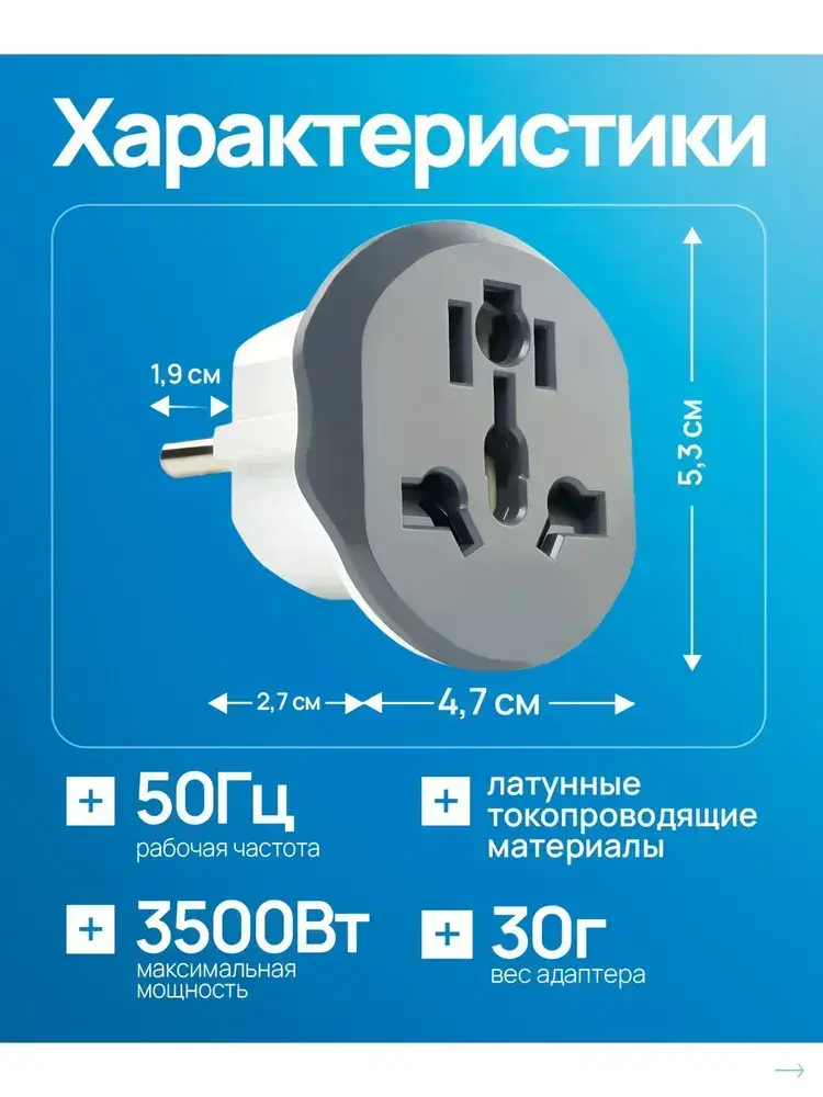 переходник с китайской вилки на российскую , переходник на евровилку , серый Латунь! R74S 16А Сетевой адаптер для путешествий