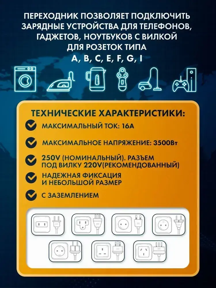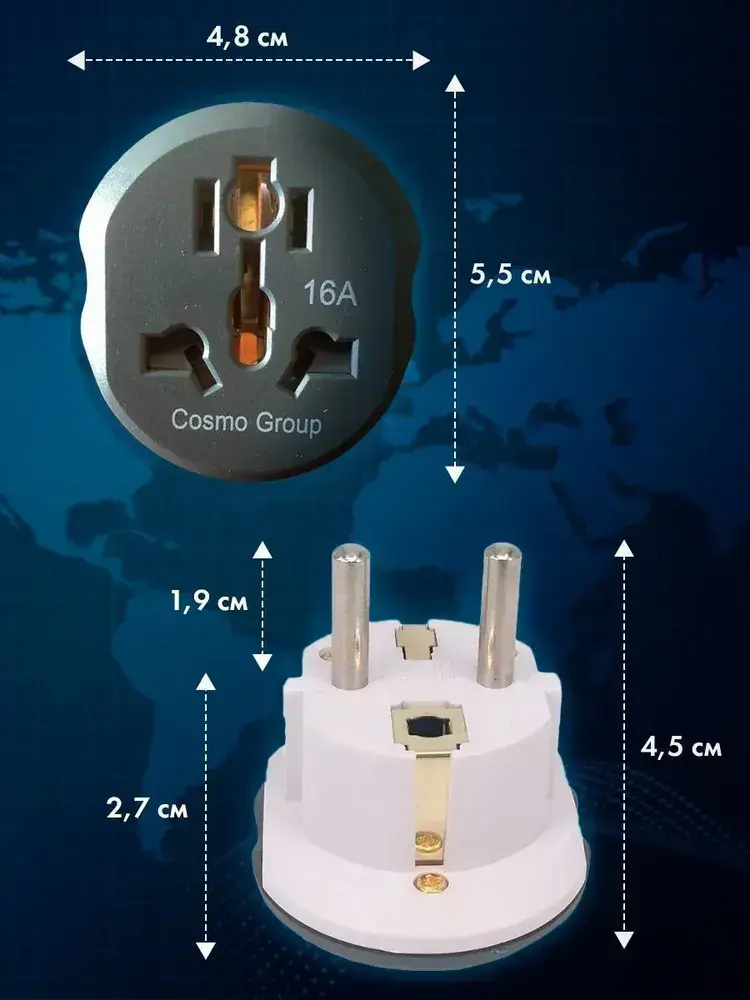 Переходник с китайской вилки универсальный на евровилку, сетевой адаптер на евро розетку