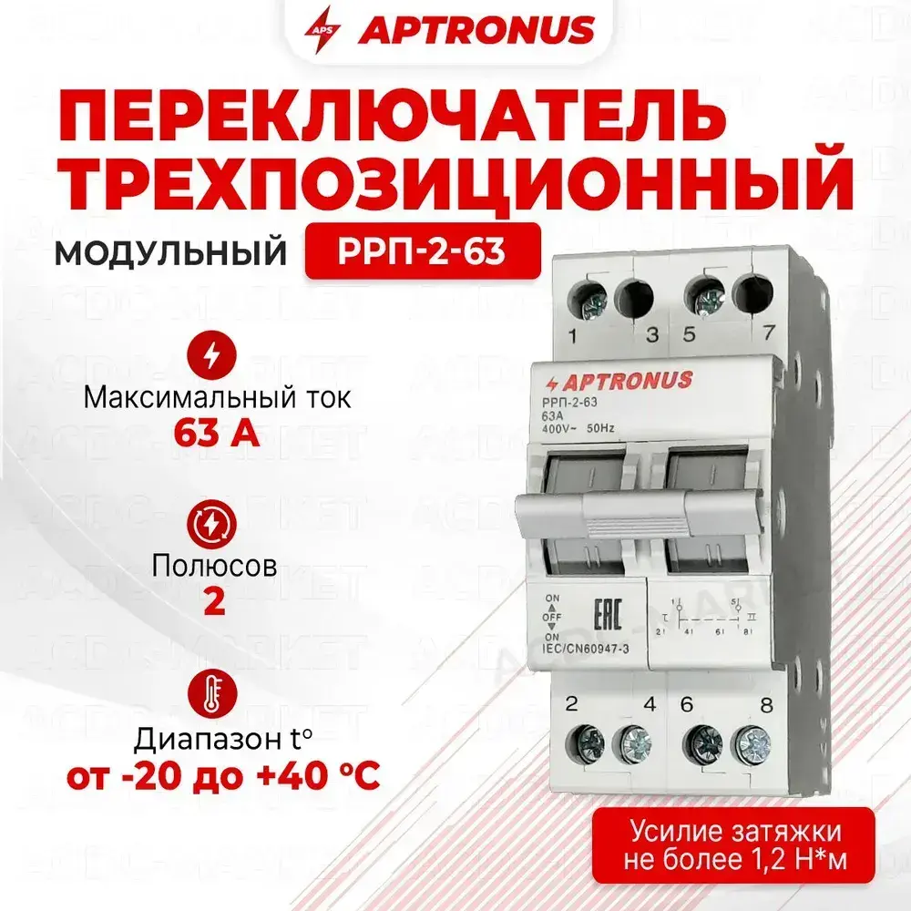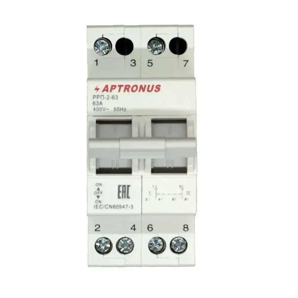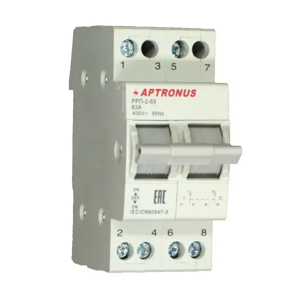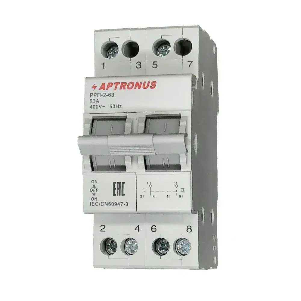 Переключатель ручной реверсивный трехпозиционный (реверсивный рубильник) РРП-2-63, APTRONUS, 2P, 63А.