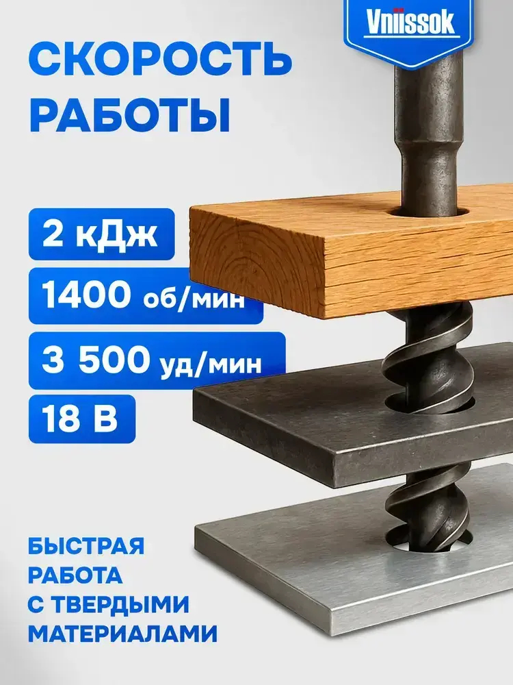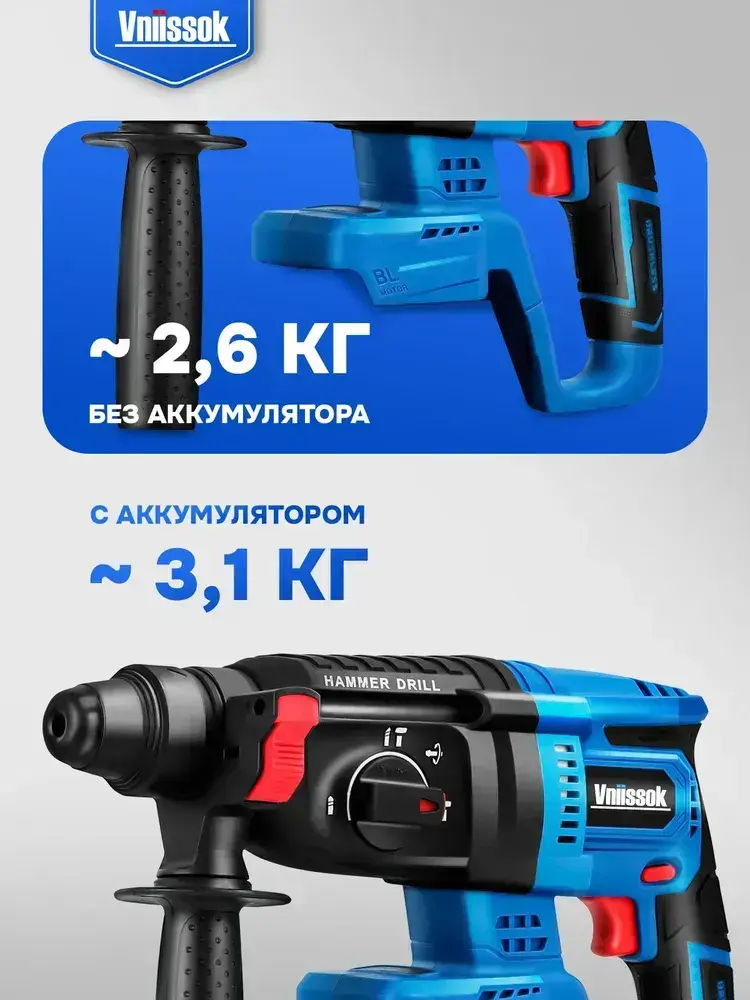 Перфоратор бесщеточный аккумуляторный VNIISSOK 2Дж, V-18В