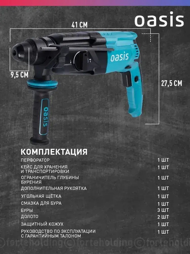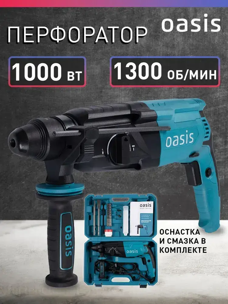 Перфоратор электрический сетевой Oasis PR-100, 1000 Вт, SDS-plus / дрель ударная с кейсом