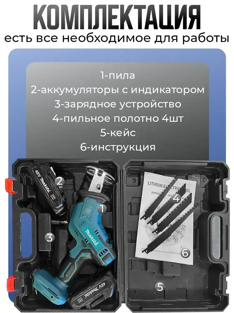 Пила сабельная Макита аккумуляторная 48 V в кейсе 2 АК с индикатором