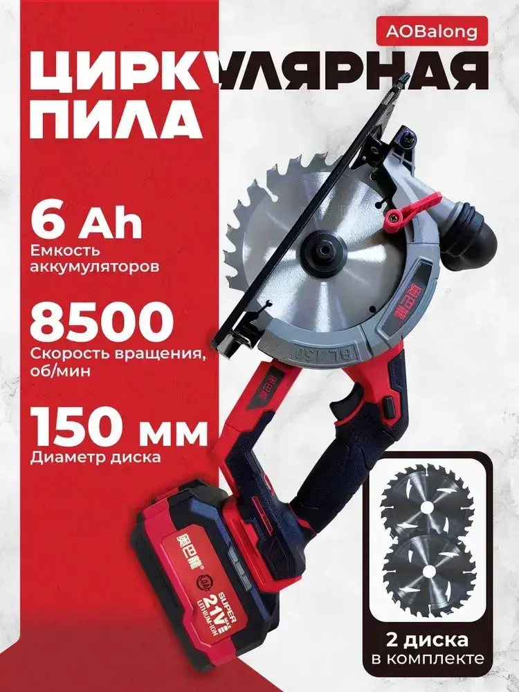 Пила циркулярная бесщеточная аккумуляторная дисковая AOBalong