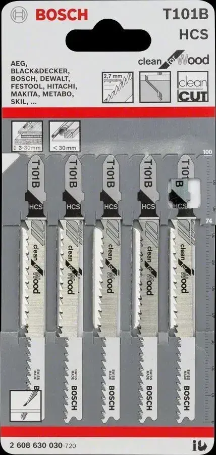 Пилка для лобзика T101B по дереву, сталь HCS, длина 100 мм, уп. 5 шт.