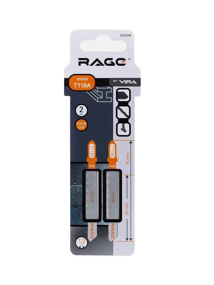 Пилки для лобзика по металлу 76 мм 2 шт T118A RAGE by VIRA