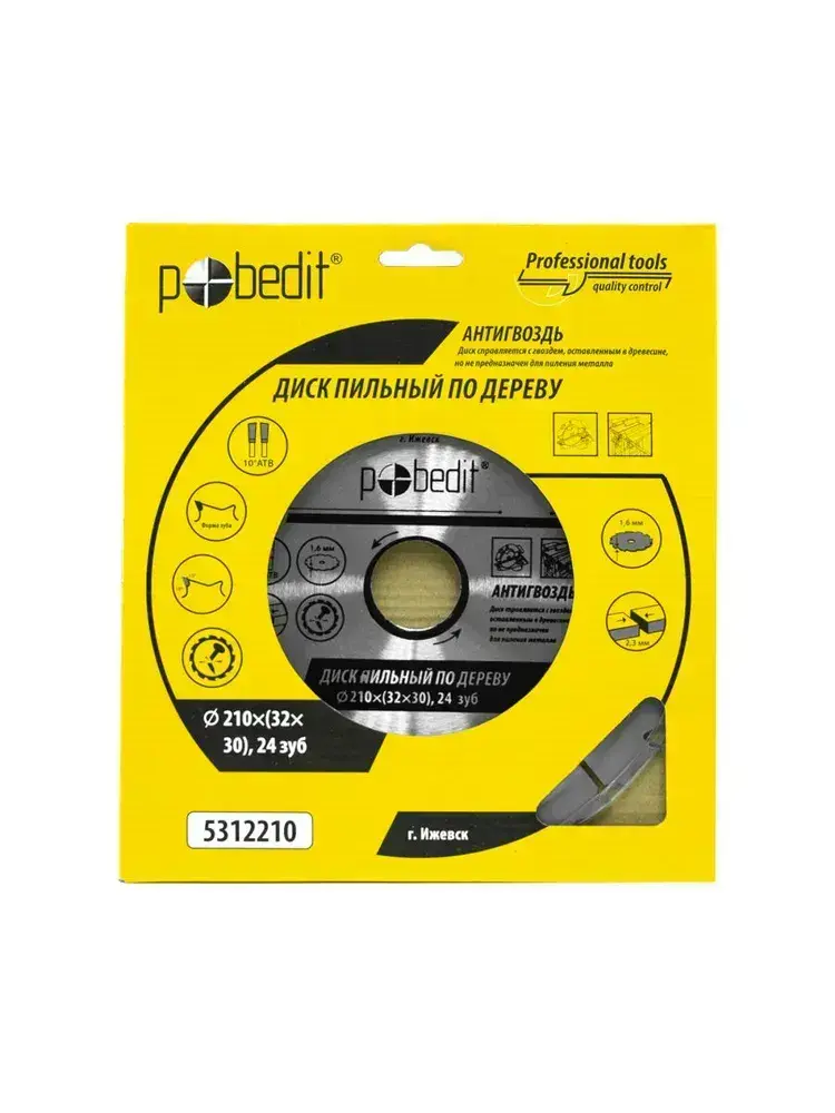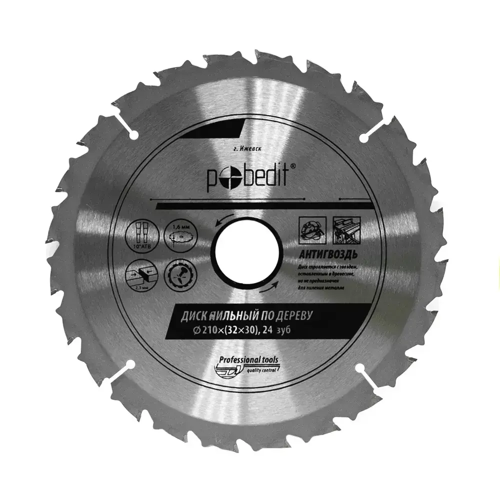 Пильный диск по дереву Антигвоздь 210 мм 24 зубьев