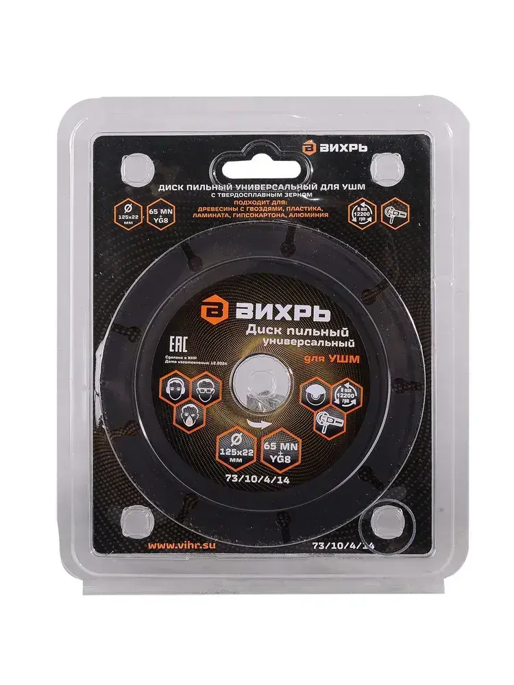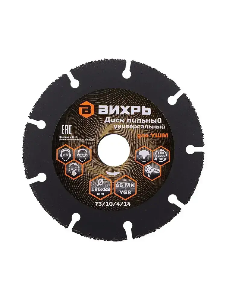 Пильный диск по дереву для УШМ (для болгарки) 125х22 мм Вихрь - с твердосплавным зерном; универсальный