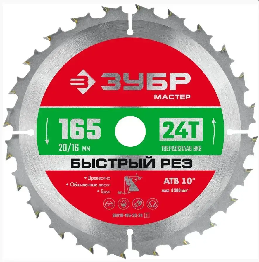 Пильный диск по дереву ЗУБР 165x20/16 мм Быстрый рез 36910-165-20-24_z01