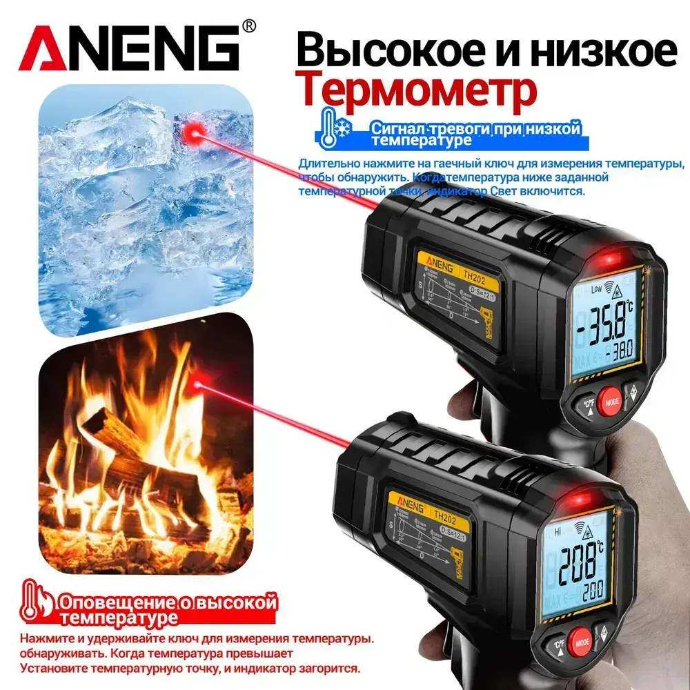 Пирометр / бесконтактный измеритель температуры /ANENG TH202