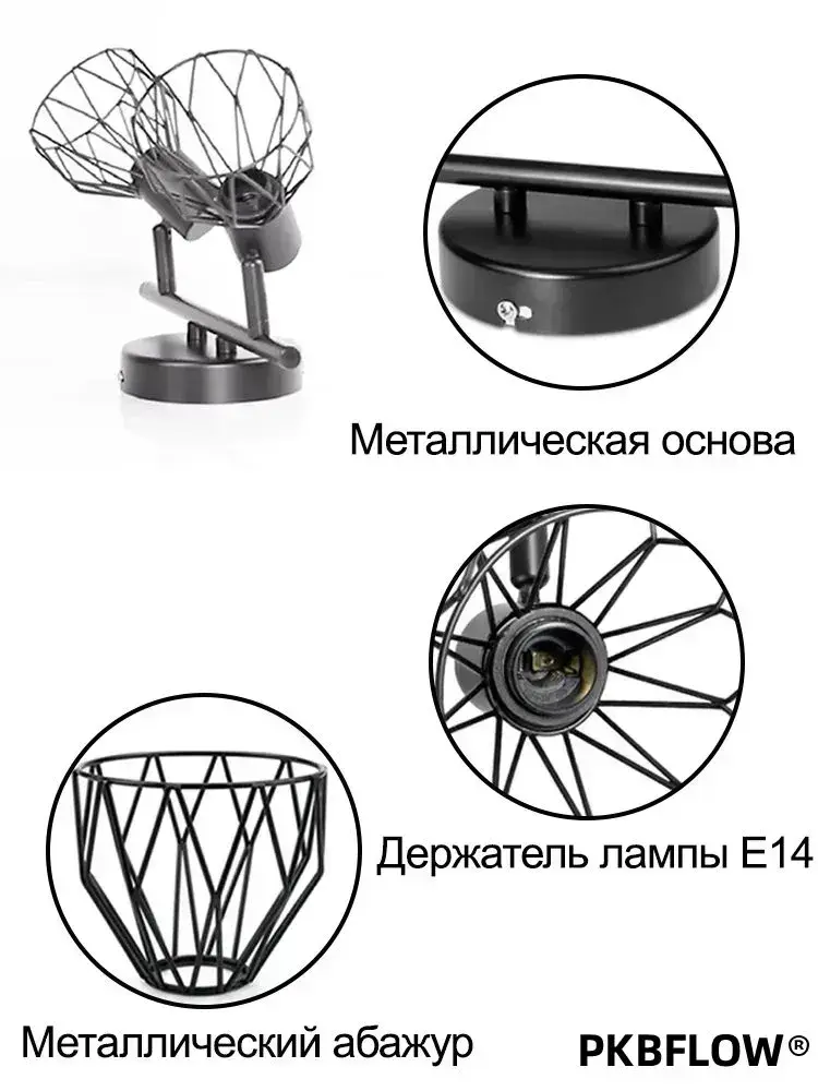 PKBFLOW бра настенные светильники 2 плафона, Светильник настенный, ретро лампа для освещения спальни, E14, 40Вт