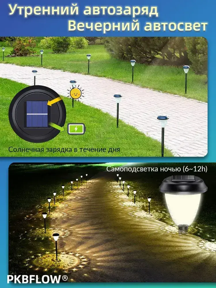 PKBFLOW фонарики садовые на солнечных батареях,6 штук