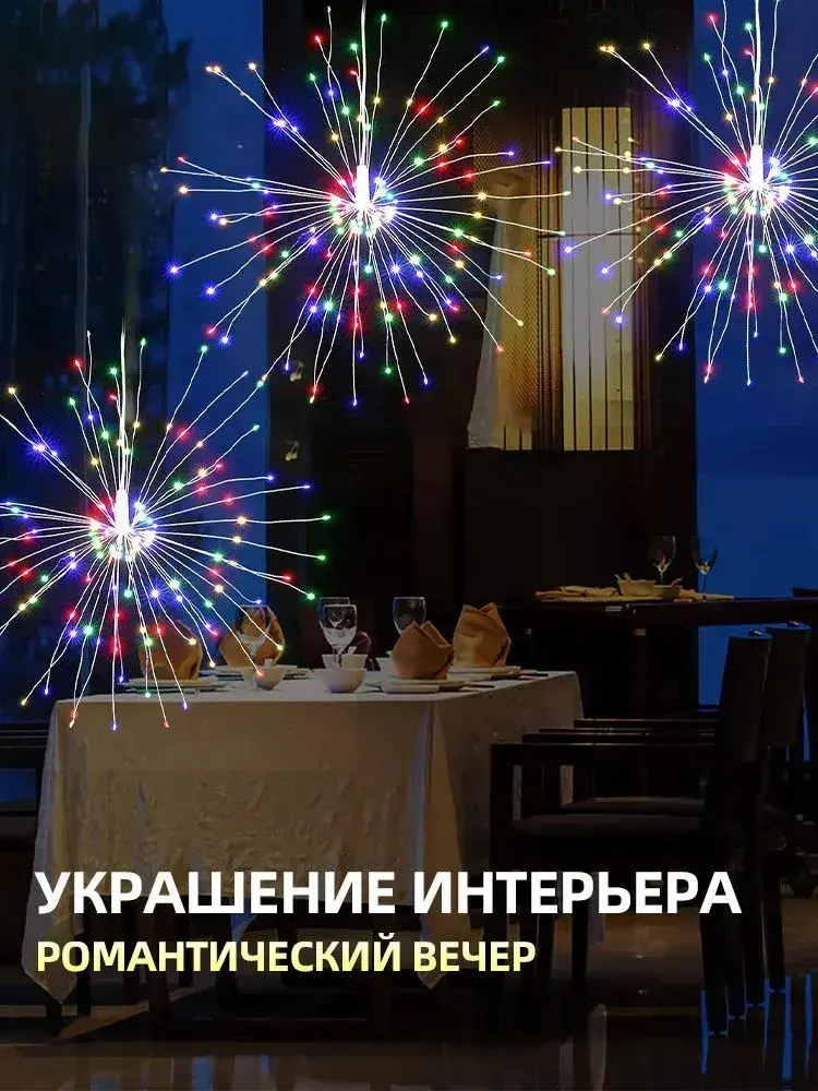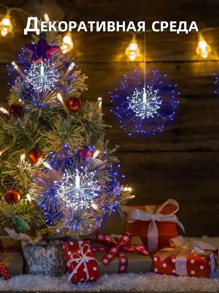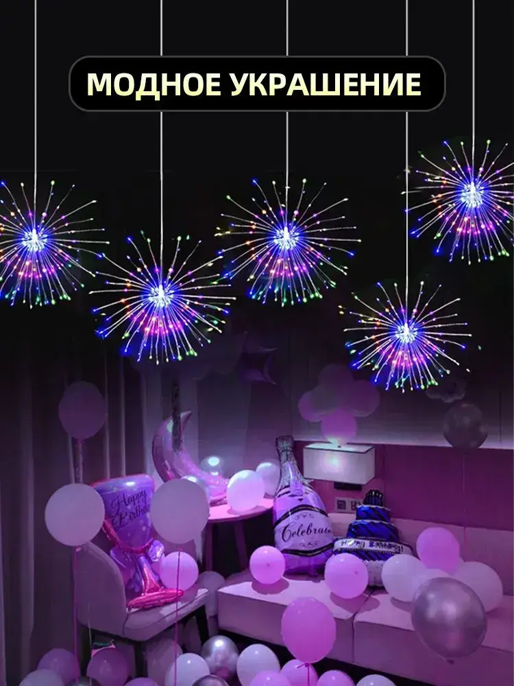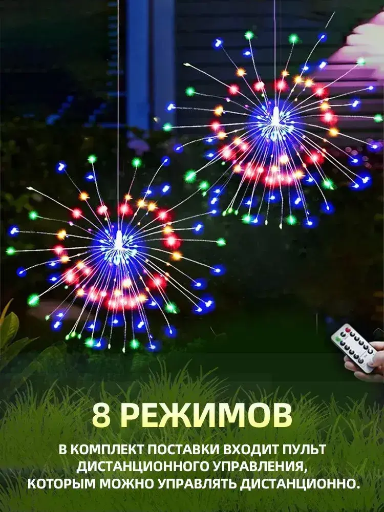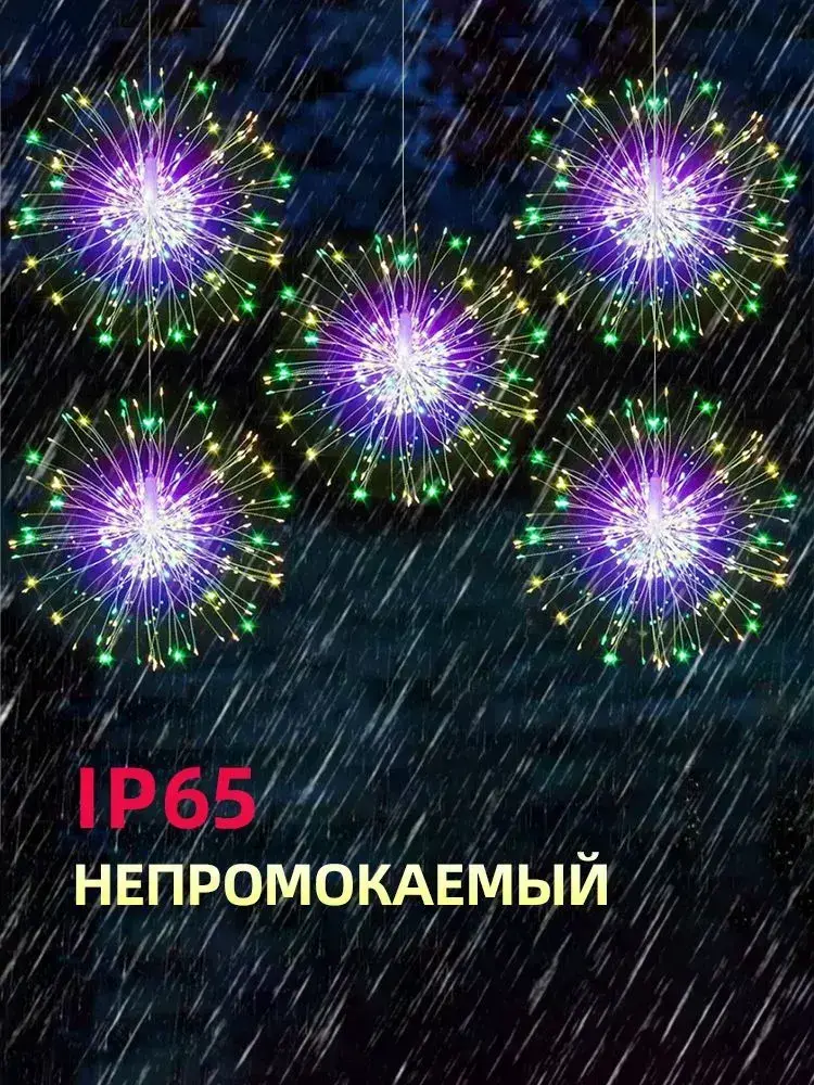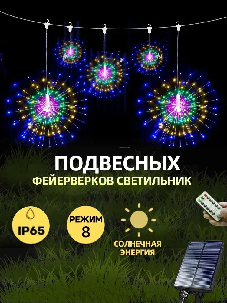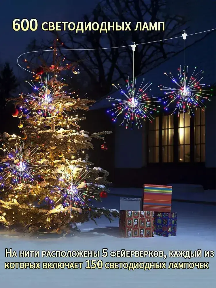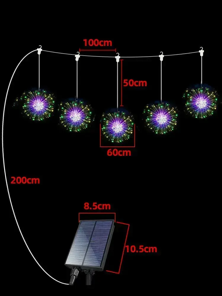 PKBFLOW Подвесных фейерверков светильник на солнечных, гирлянд с пультом, 600 ламп, цветной, 5 шт