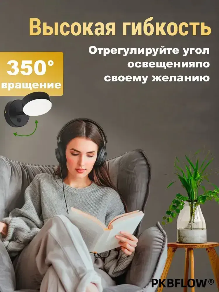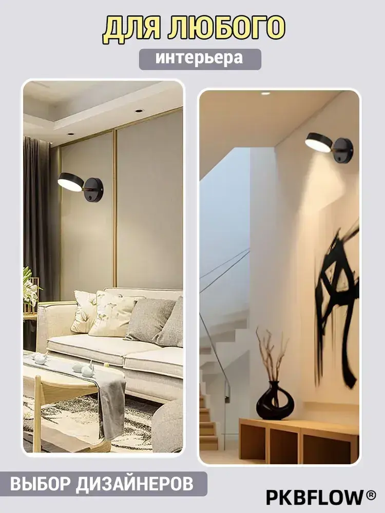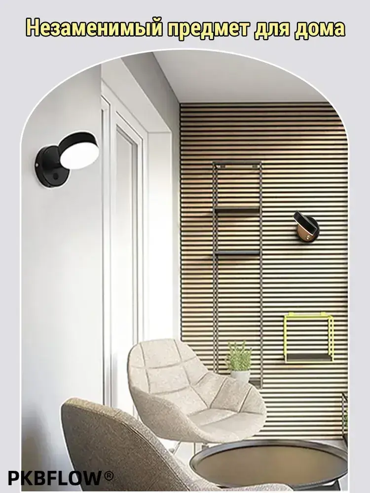 PKBFLOW Светильник настенный,с выключателем, трехцветный свет, 220V, черный