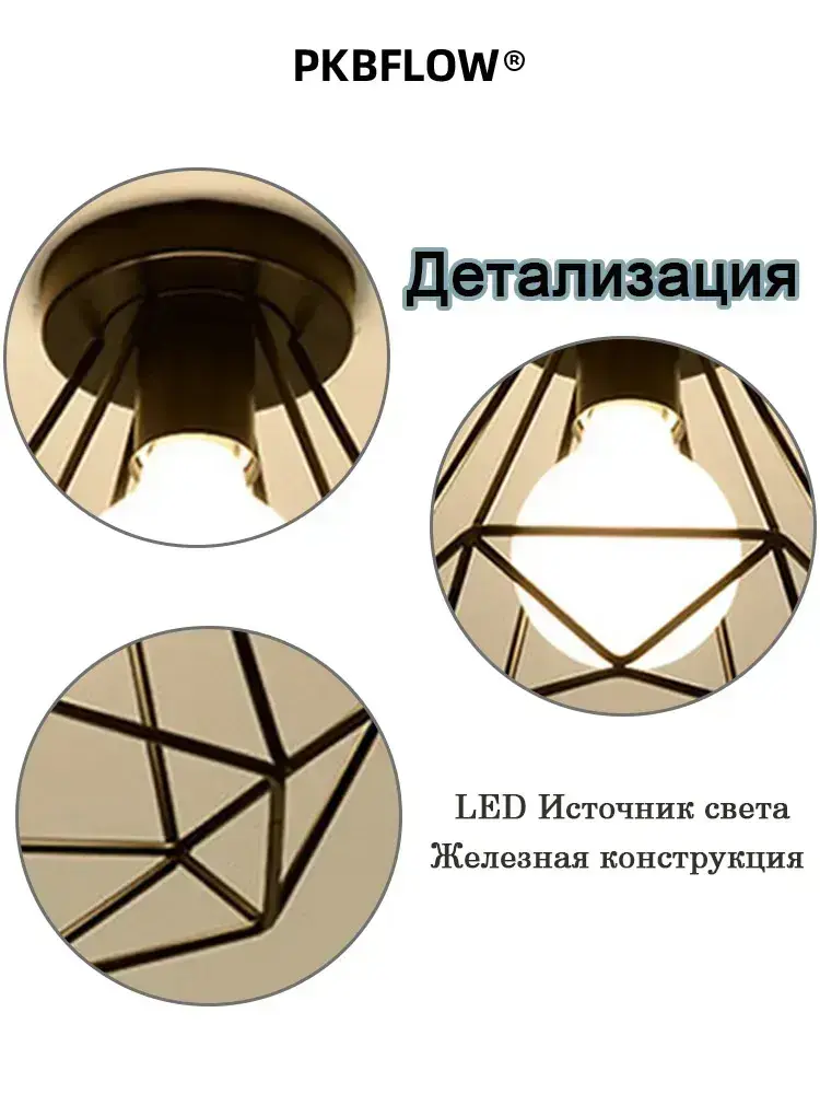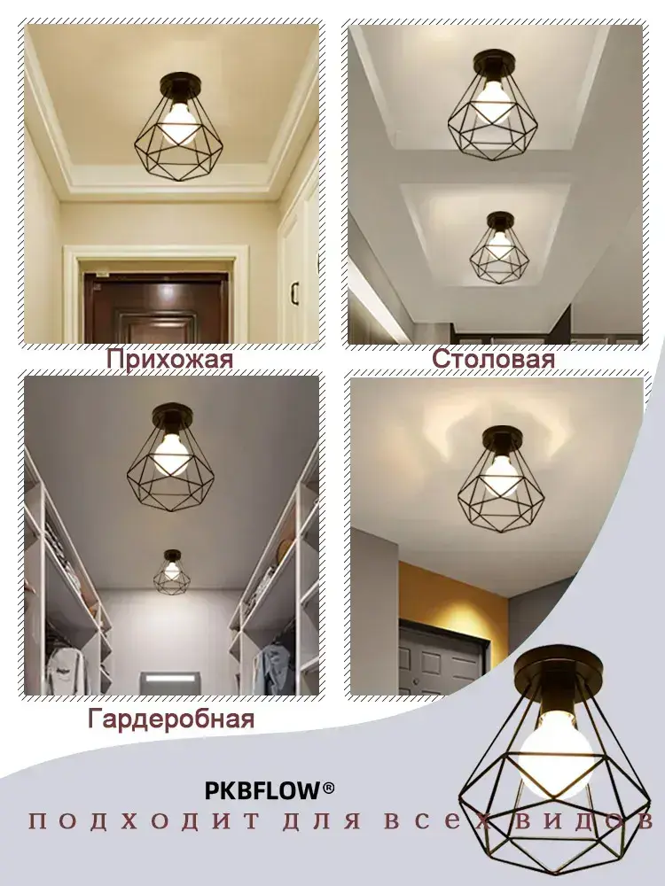 PKBFLOW Светильник потолочный Лофт, Люстра потолочная, Е27, Подвесной светильник