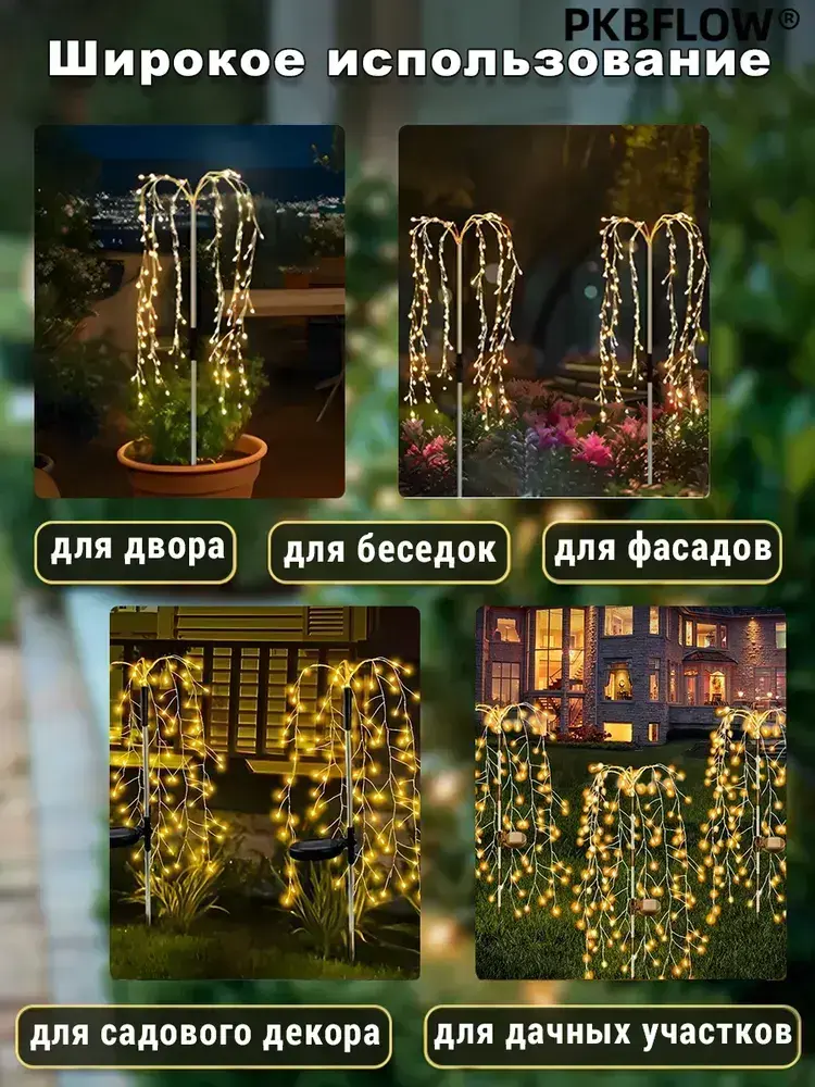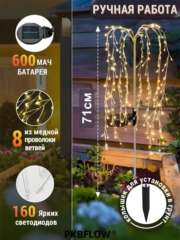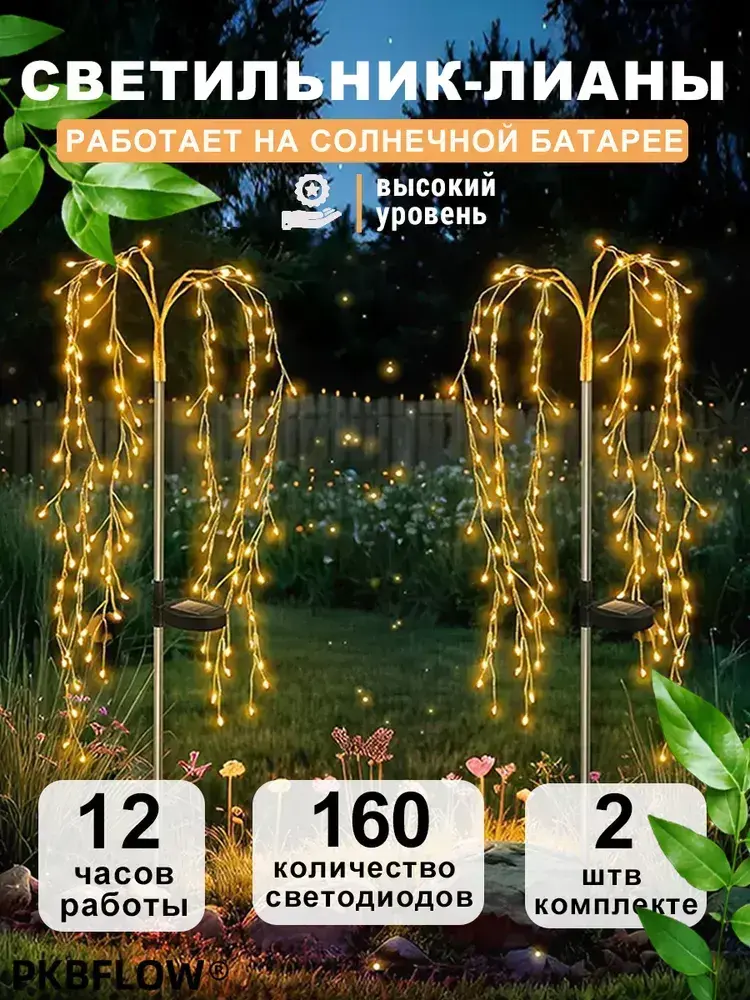 PKBFLOW Светильник садовый на солнечной батарее Ива,2 шт,теплый цвет