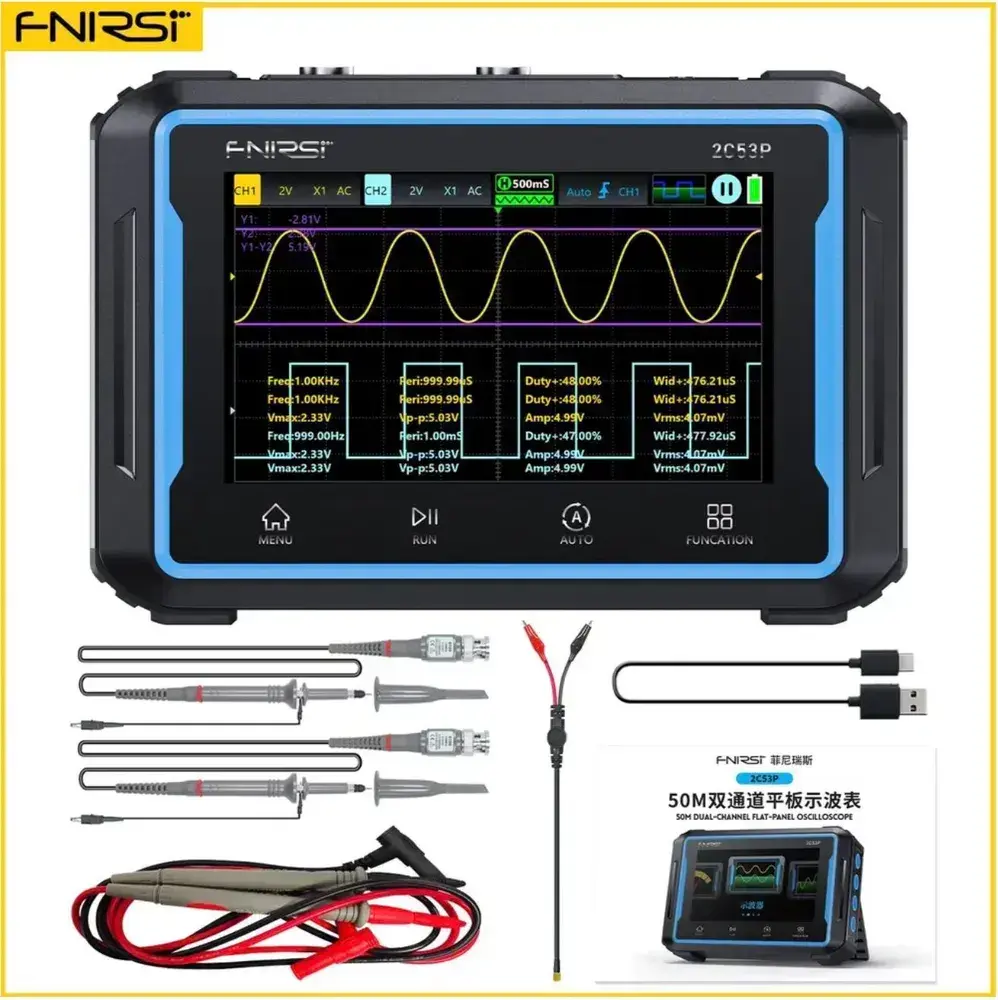 Планшетный осциллограф FNIRSI 2C53P, 3в1: осциллограф/мультиметр/генератор сигналов DDS