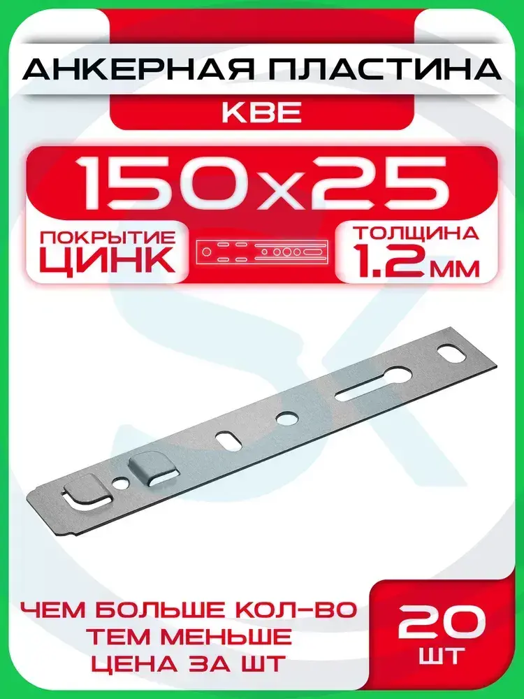 Пластина 150х25х1.2мм (20 шт) анкерная оконная KBE / Крепеж для окон
