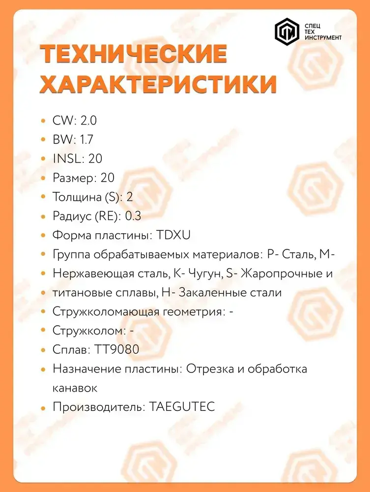 Пластина TDXU 2E-0.3 TT9080 TAEGUTEC 1 штука СпецТехИнструмент