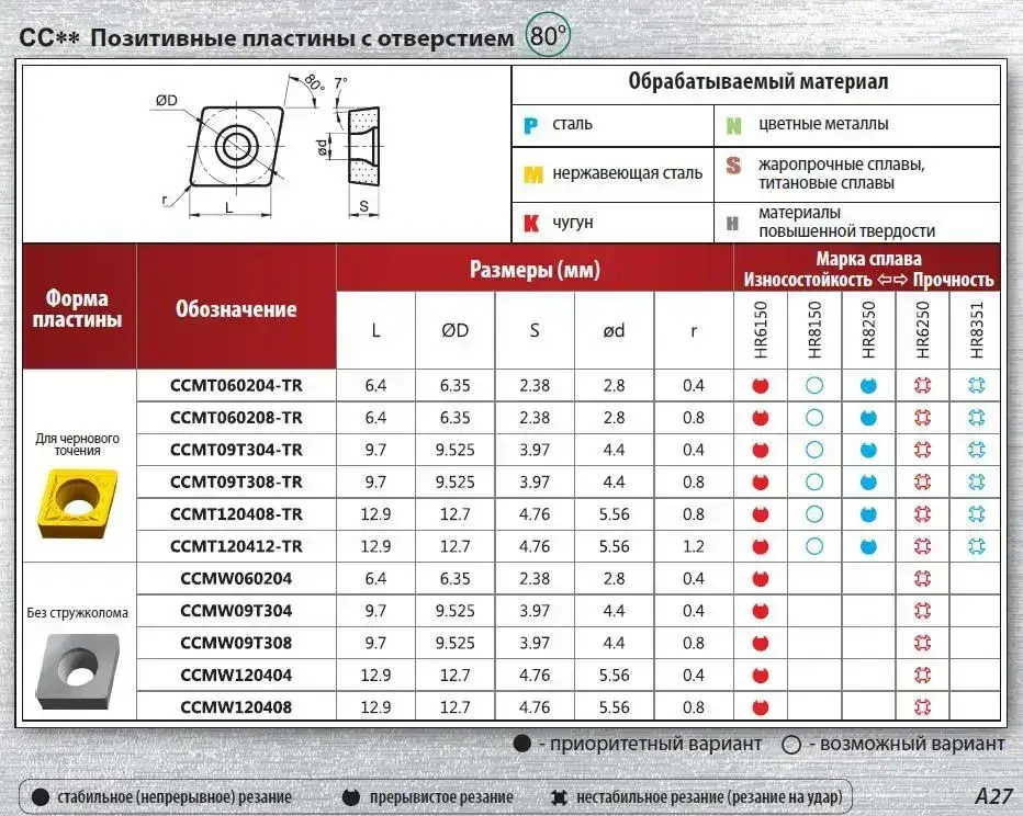 Пластина твердосплавная CCMT09T308 VP15TF / 10 штук