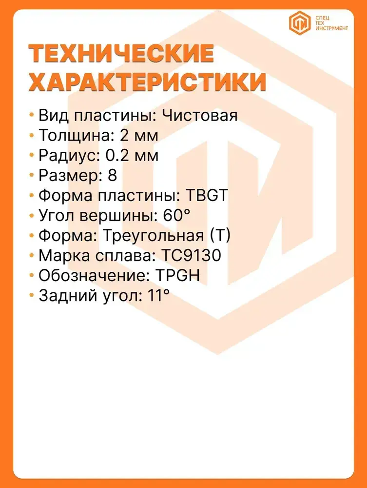 Пластины токарные по металлу TPGH080202L-FS TC9130 STI 5 штук СпецТехИнструмент