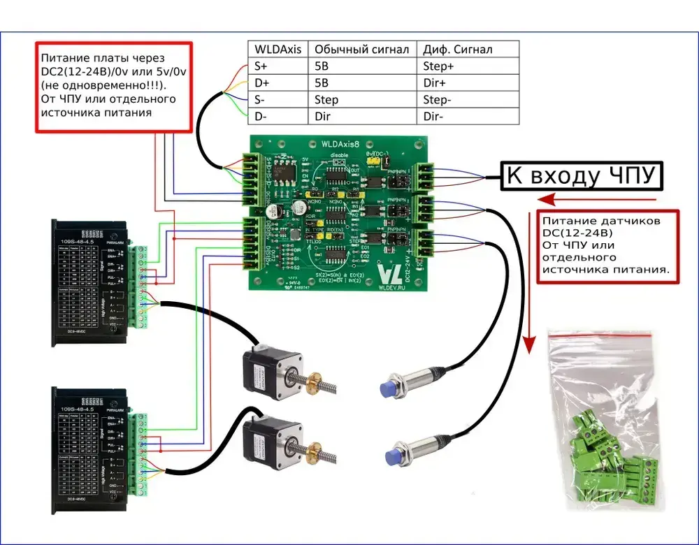 Плата выравнивания портала станка с ЧПУ. WLDAxis 8 (DC-DC)