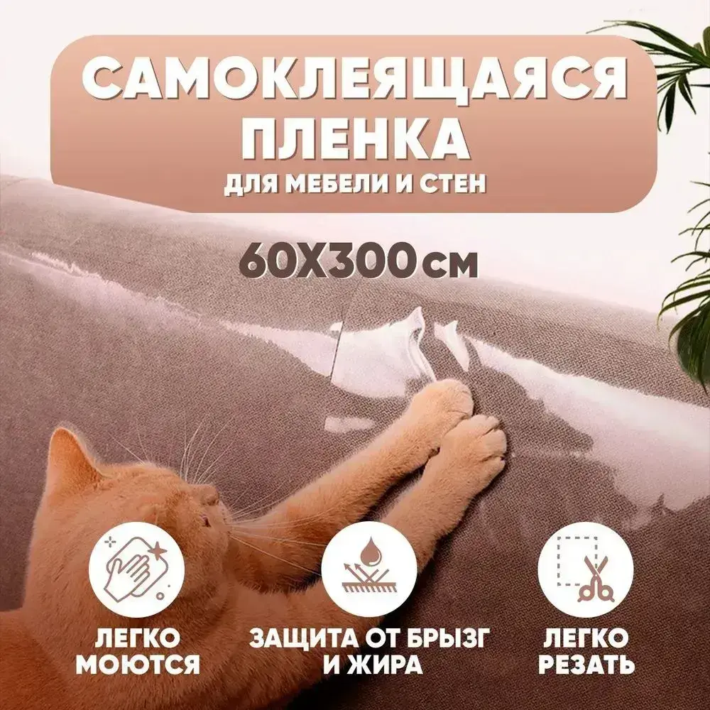 Пленка самоклеющаяся для мебели,от кошки, и наклейка на фартук кухни, прозрачная,с клеем, 60*300см