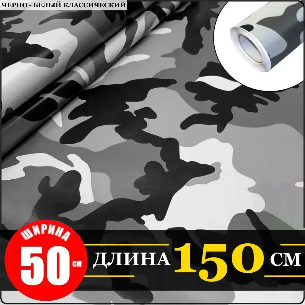 Пленка самоклеющаяся камуфляжная "Черно - белый зимний классический" (50 см x 152 см) для мебели, дизайна