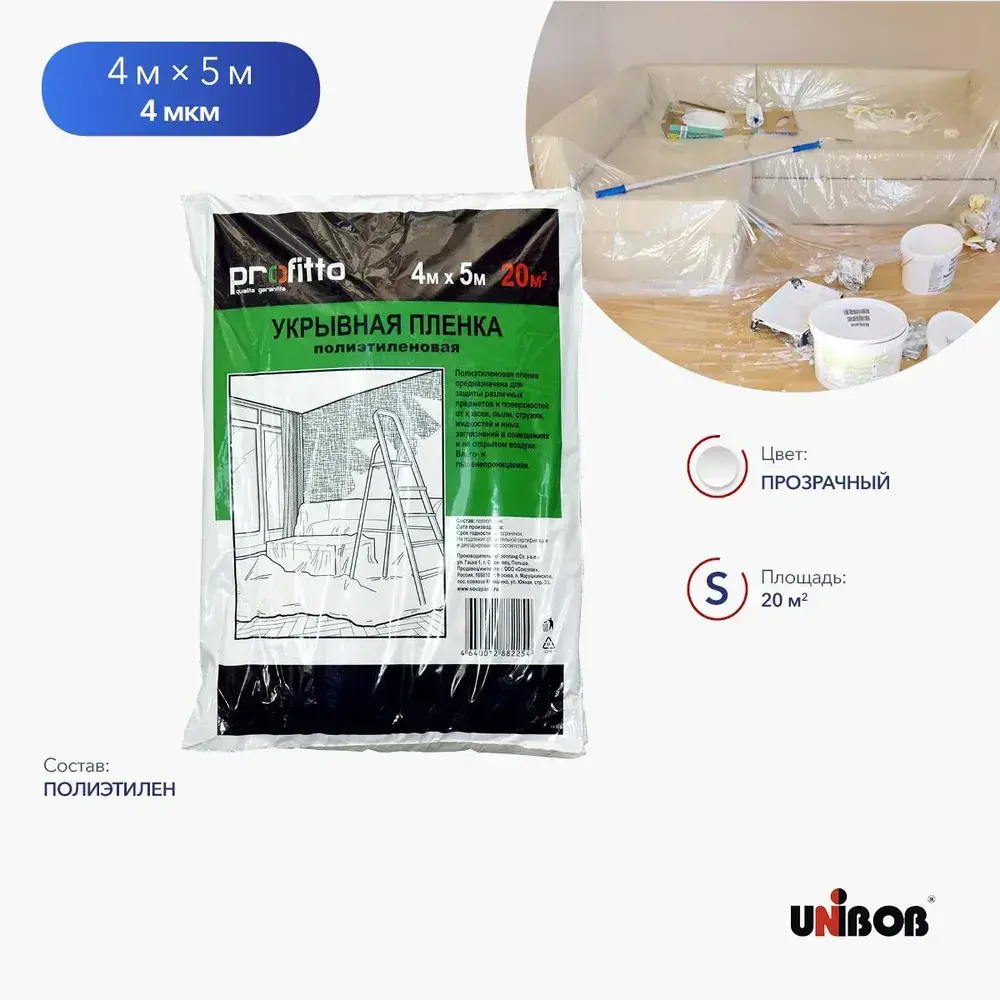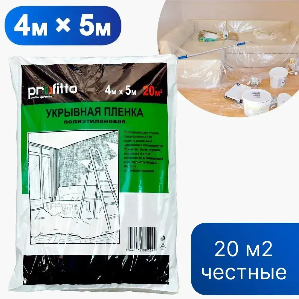 Пленка укрывная для ремонта 4 м X 5 м, 5 мкм, Защитная пленка полиэтиленовая для мебели, парника и теплиц