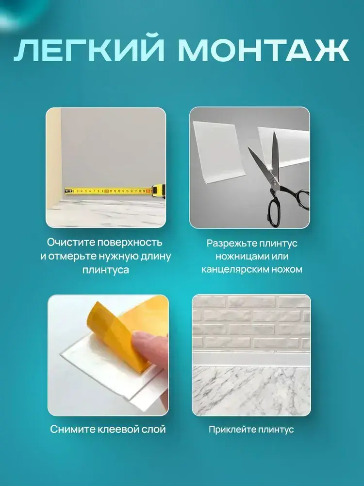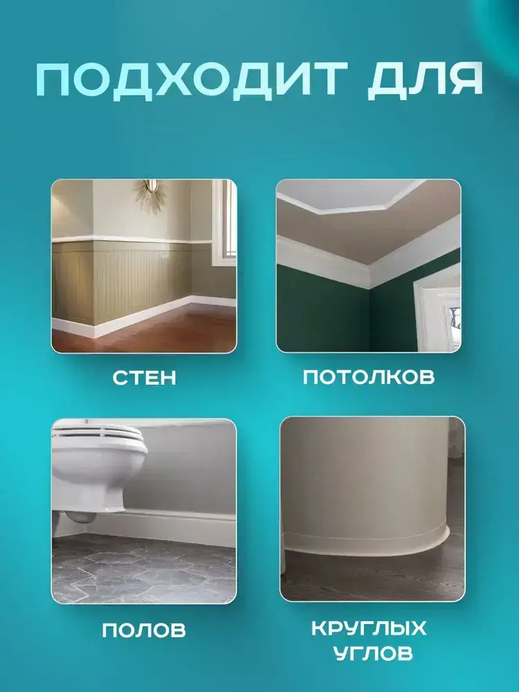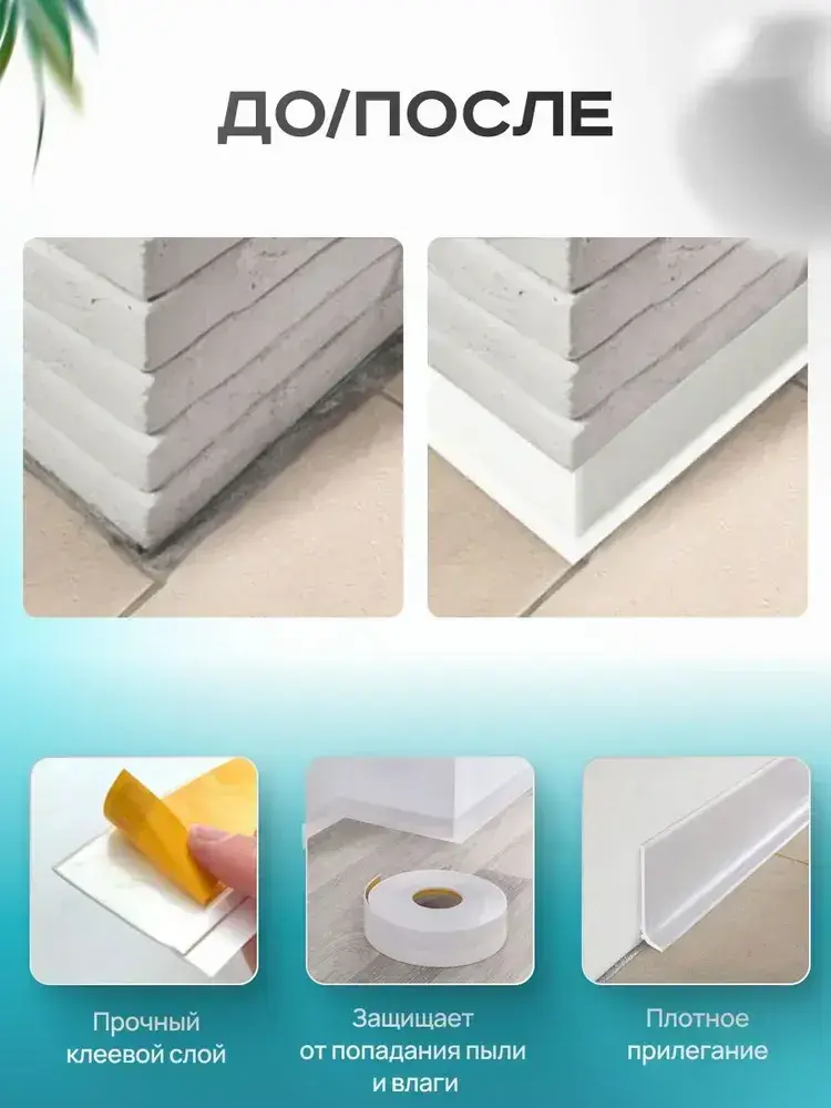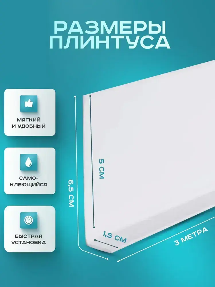 Плинтус гибкий напольный самоклеящийся, 65мм х 3м, белый, гибкий плинтус для пола.