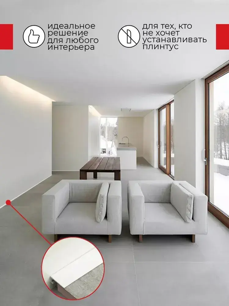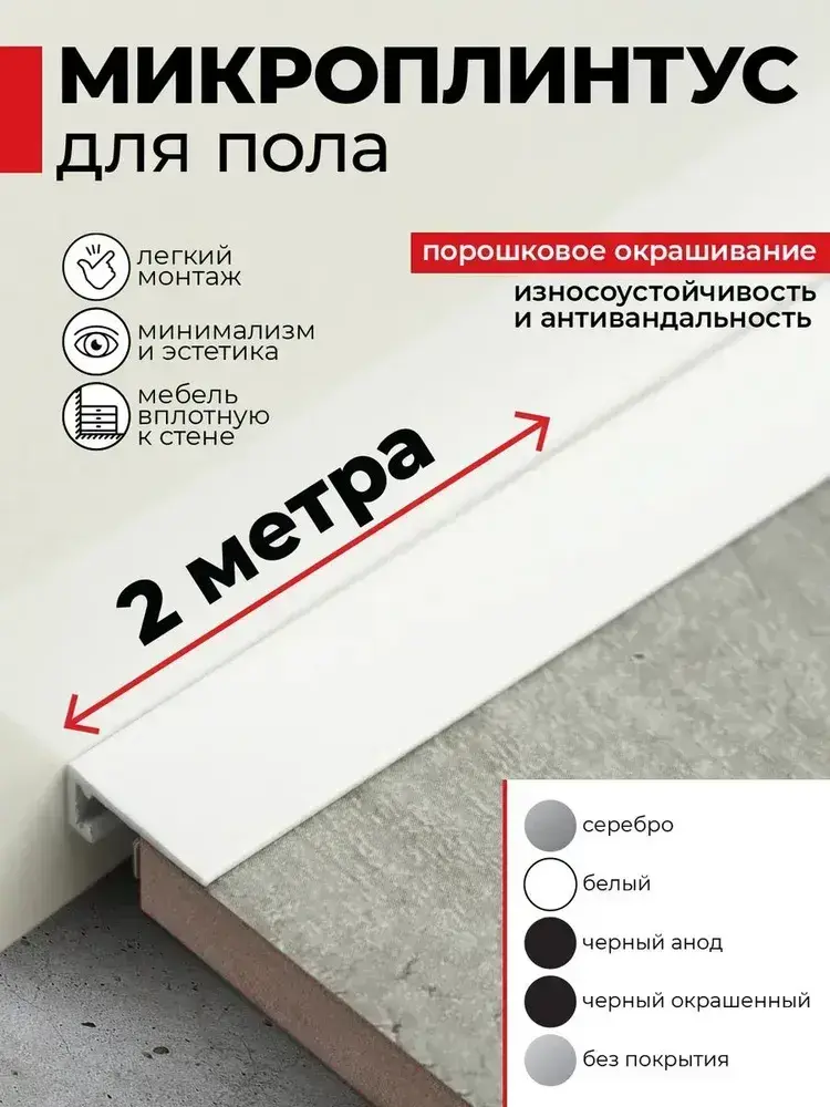 Плинтус напольный алюминиевый скрытый щелевой белый (микроплинтус) 16х6х2000мм