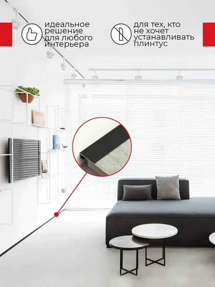 Плинтус напольный скрытый алюминиевый анодированный щелевой черный (микроплинтус) 31х20х2000мм