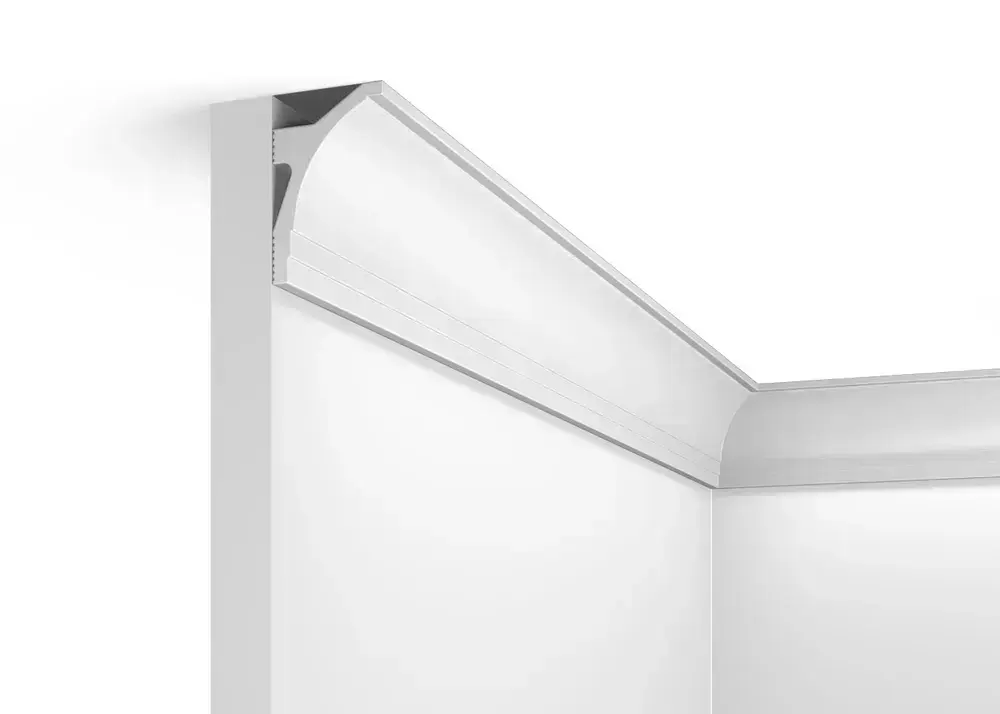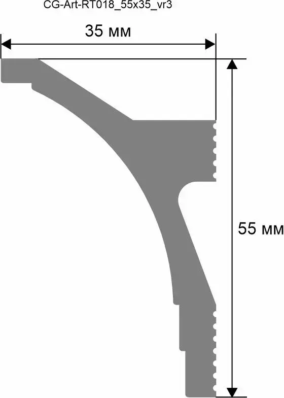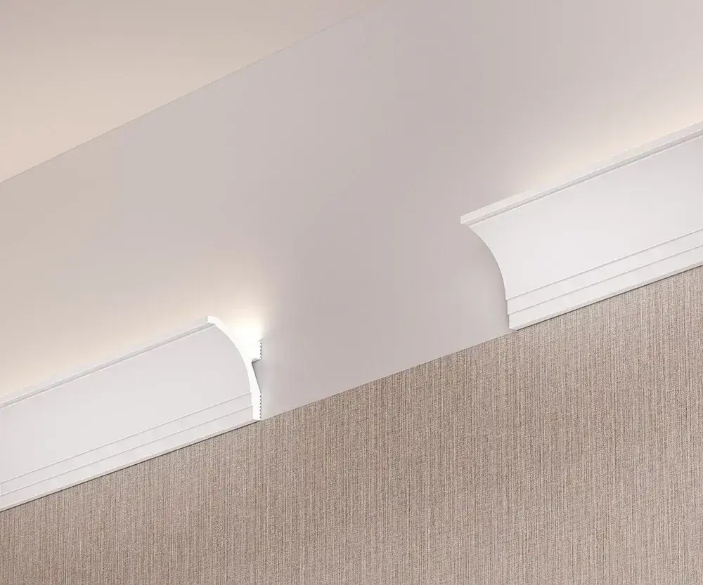 Плинтус потолочный под освещение 1750мм, 55х35, Карниз., Экополимер Evroplint ударопрочный VR018 с пазом для скрытого освещения