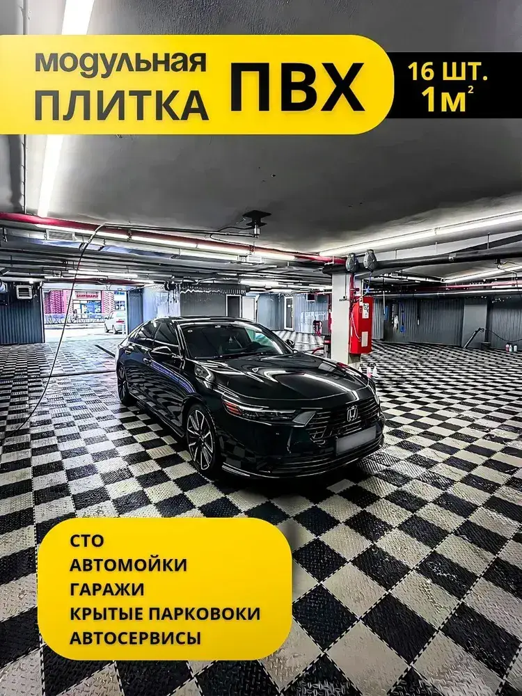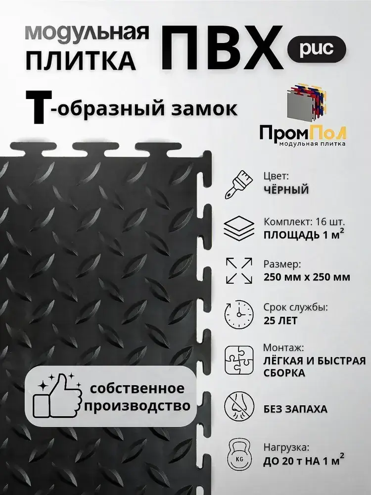 Плитка ПВХ 16шт, модульная плитка для пола чёрная 5мм, 250х250мм замковый пвх, напольное покрытие
