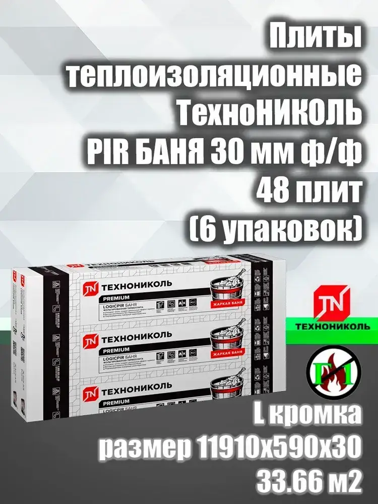 Плиты теплоизоляционные ТехноНИКОЛЬ PIR БАНЯ 30 мм 48 плит (6 упаковок)