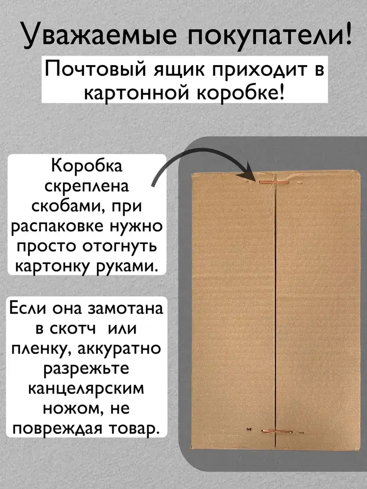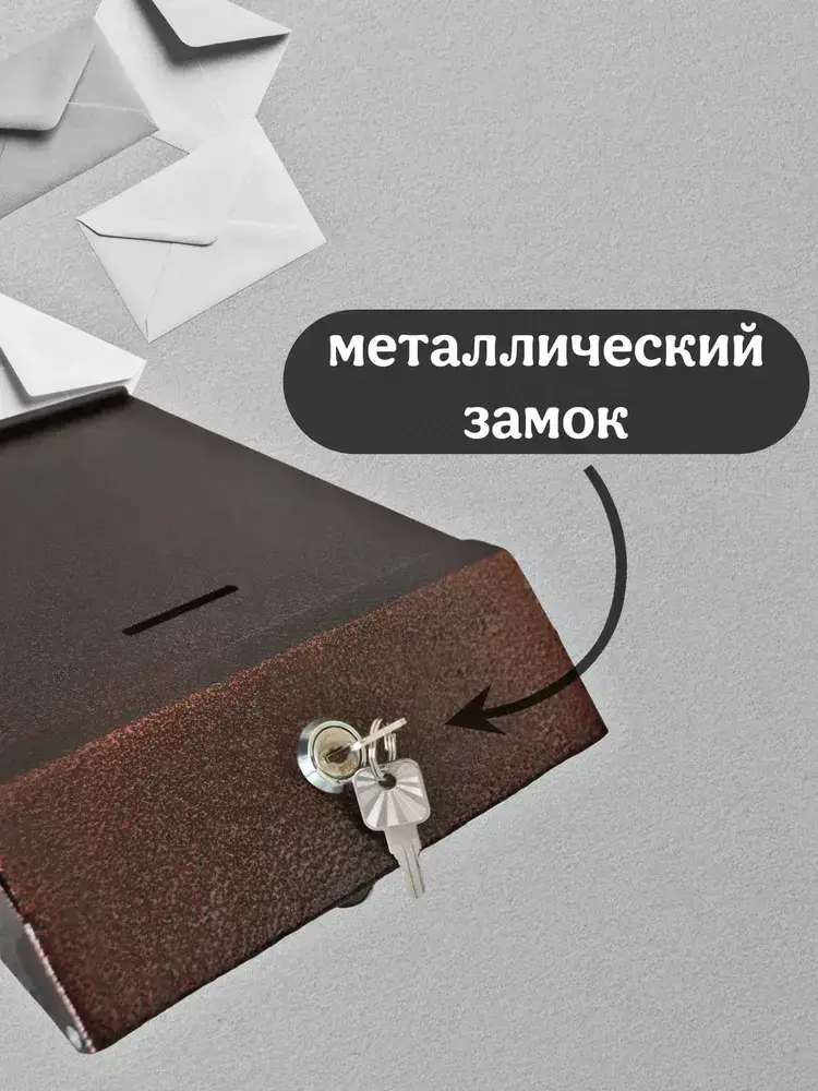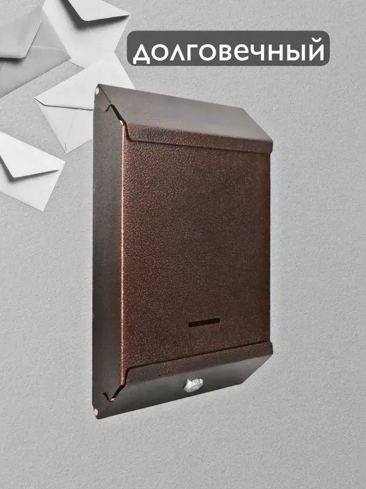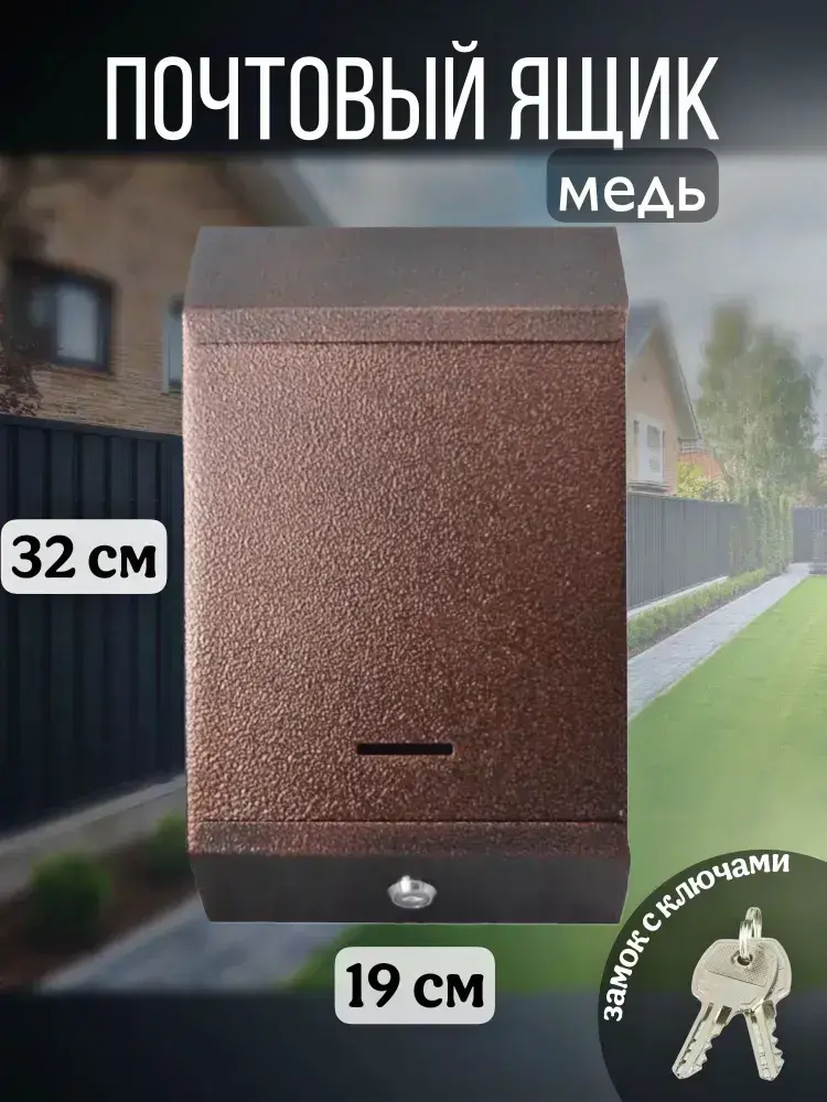 Почтовый металлический ящик с замком 320 мм х 190 мм х 60 мм, медь