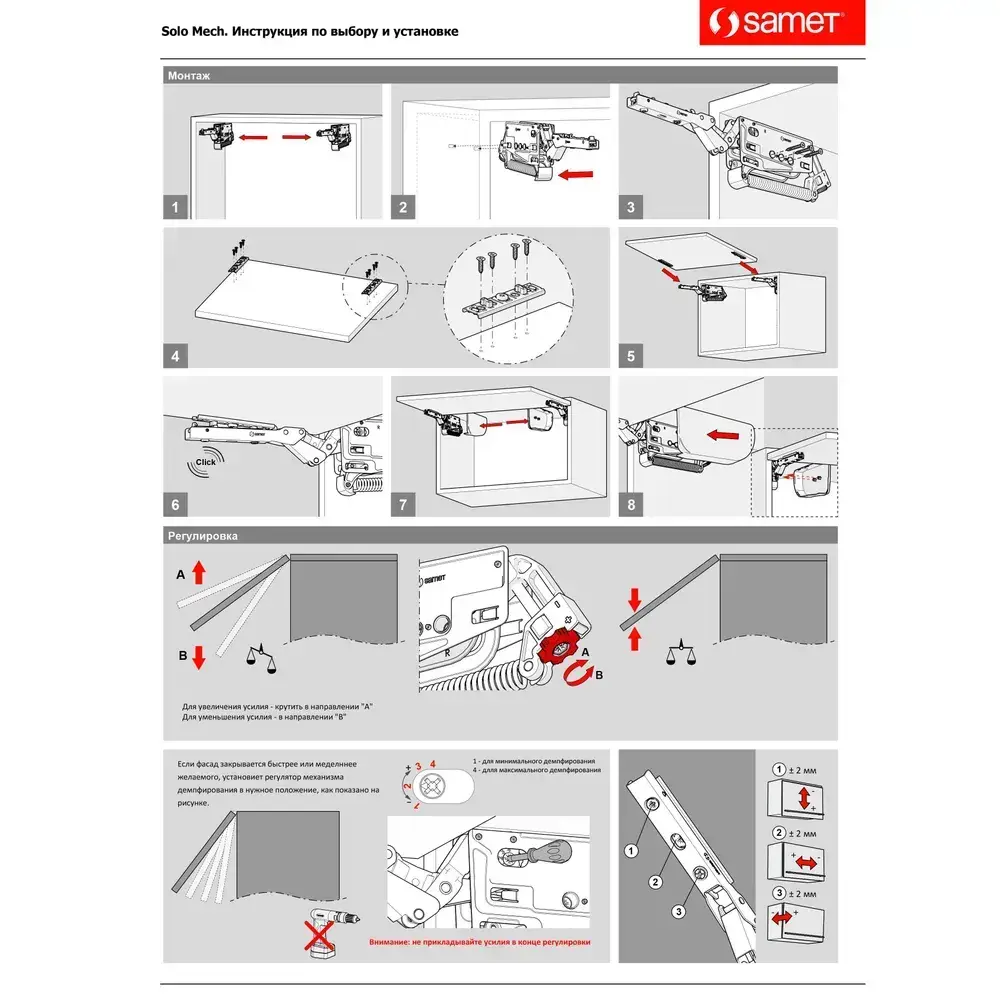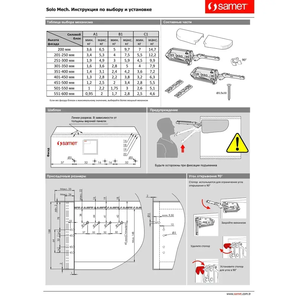 Подъемный механизм Solo Mech C1 с доводчиком SAMET Турция, белый. Фасад: от 2,5 до 14 кг