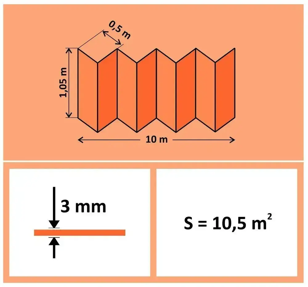 Подложка "Гармошка" для напольных покрытий Солид/Solid 3 мм оранжевая, 10,5 м2
