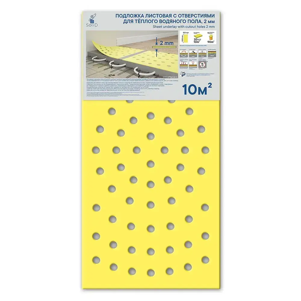Подложка листовая, 2мм, с отверстиями для теплого пола под ламинат/паркет, 1х0,5м в уп.10м2
