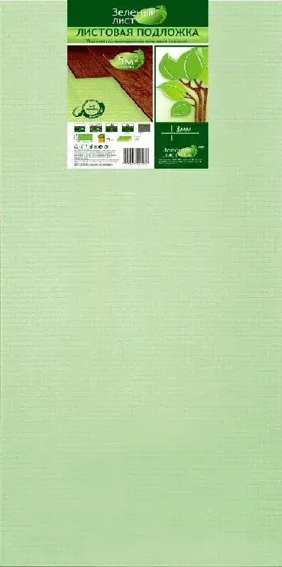 Подложка Листовая из ВПС под ламинат и паркетную доску, 3мм, зелёная, 1х0,5м/уп.5кв.м.