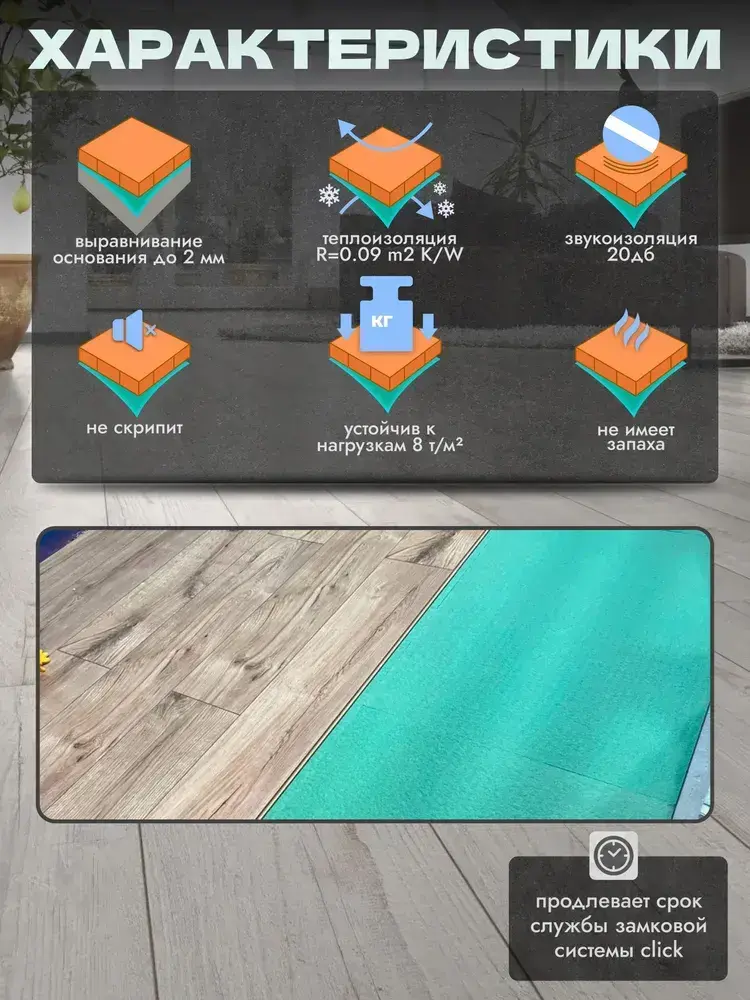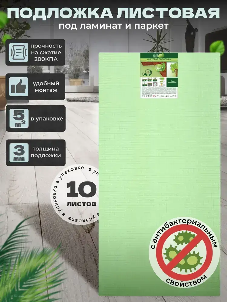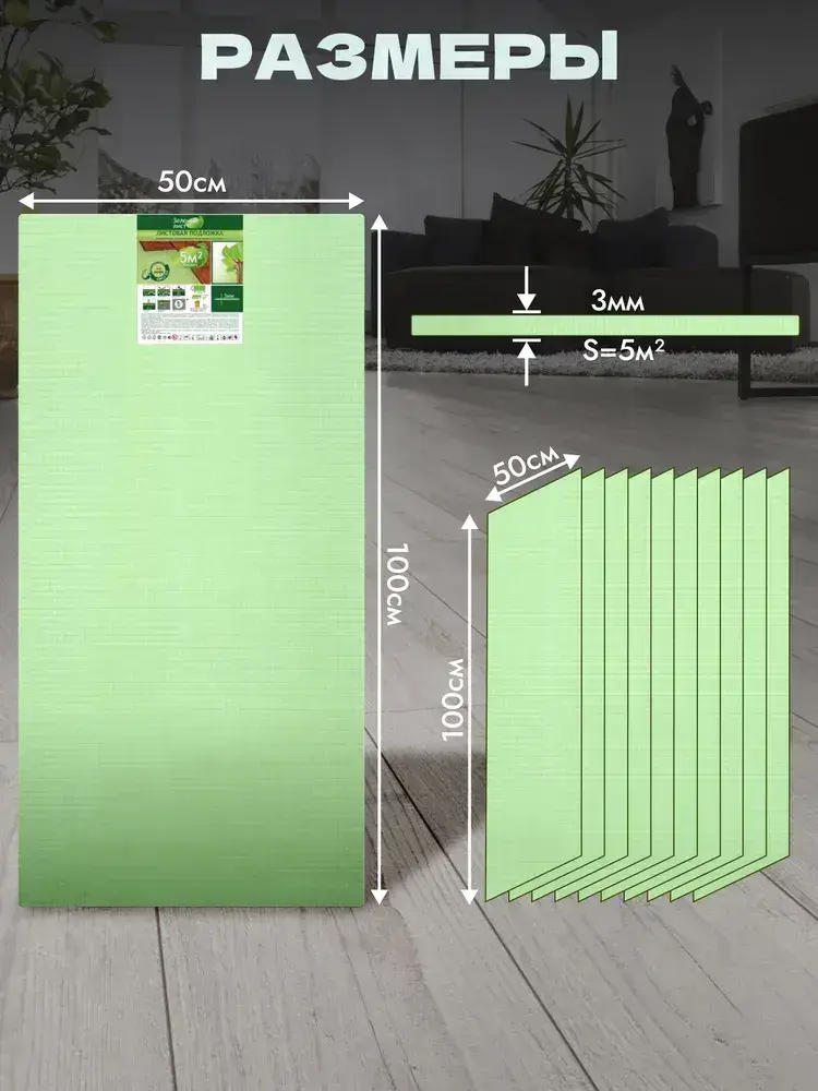 Подложка под ламинат, паркет, Зеленый лист 3 мм Солид/Solid утеплитель, звукоизоляция