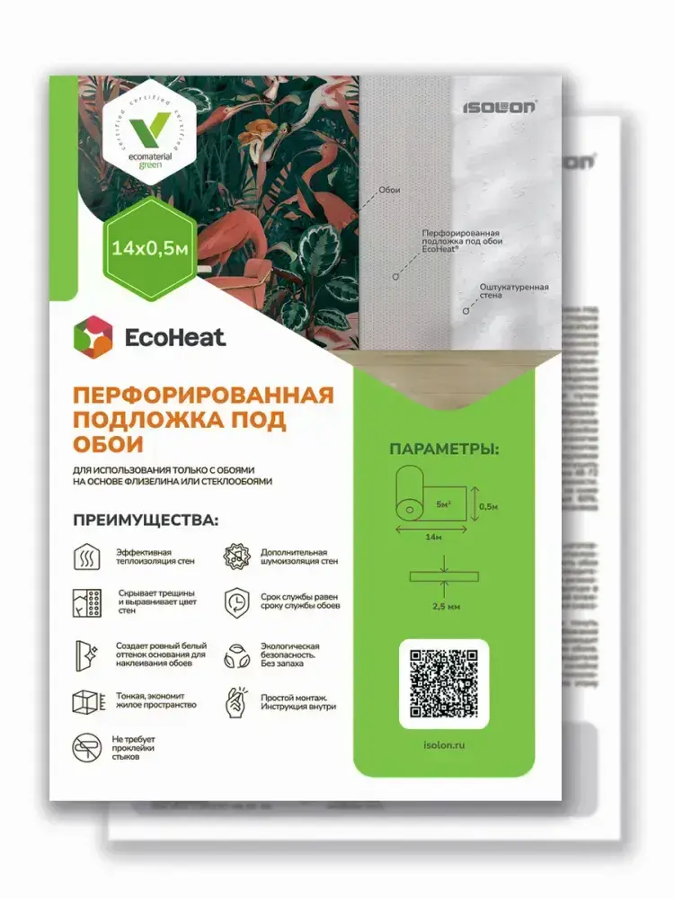 Подложка под обои перфорированная ISOLON EcoHeat, утеплитель под обои, 7 кв.м.(звукоизоляция, утепление стен)
