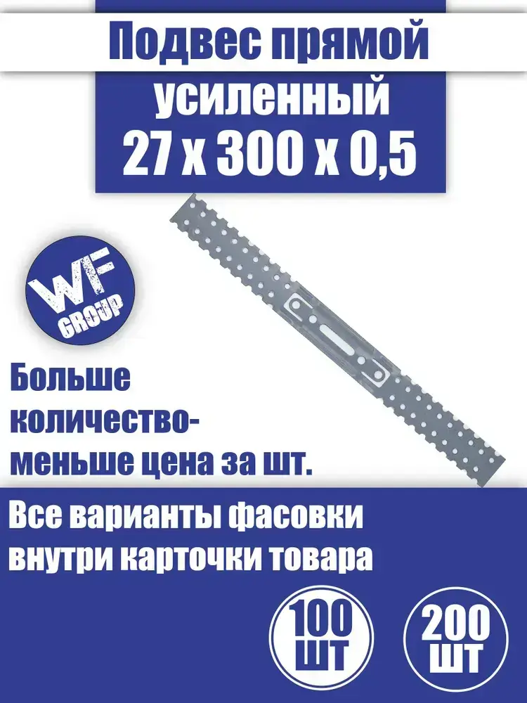 Подвес крепежный прямой для профиля 27x300x0,5 мм, 100 шт.