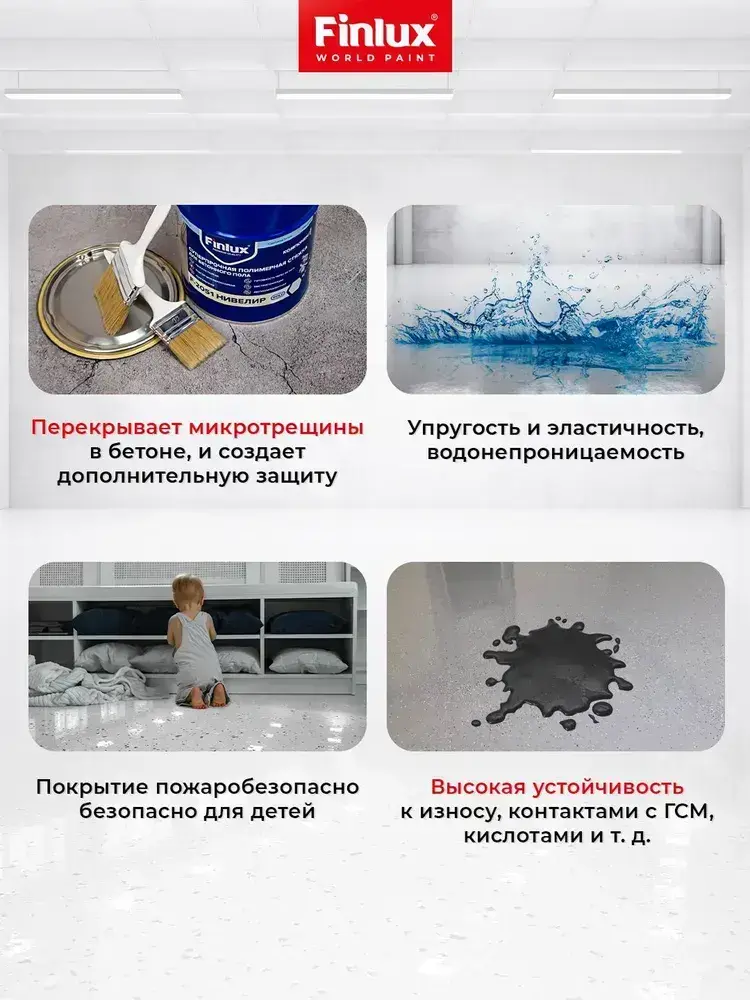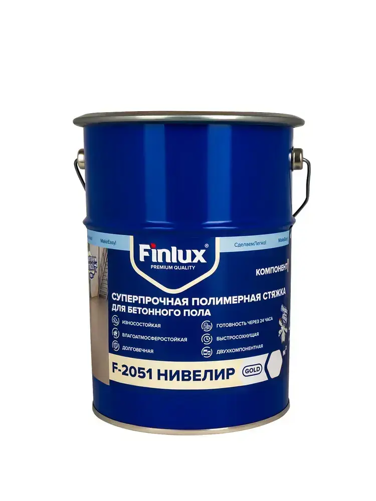 Полимерная стяжка Finlux F-2051 суперпрочная, ровнитель для наливного пола, двухкомпонентное нивелир, 10 кв. м
