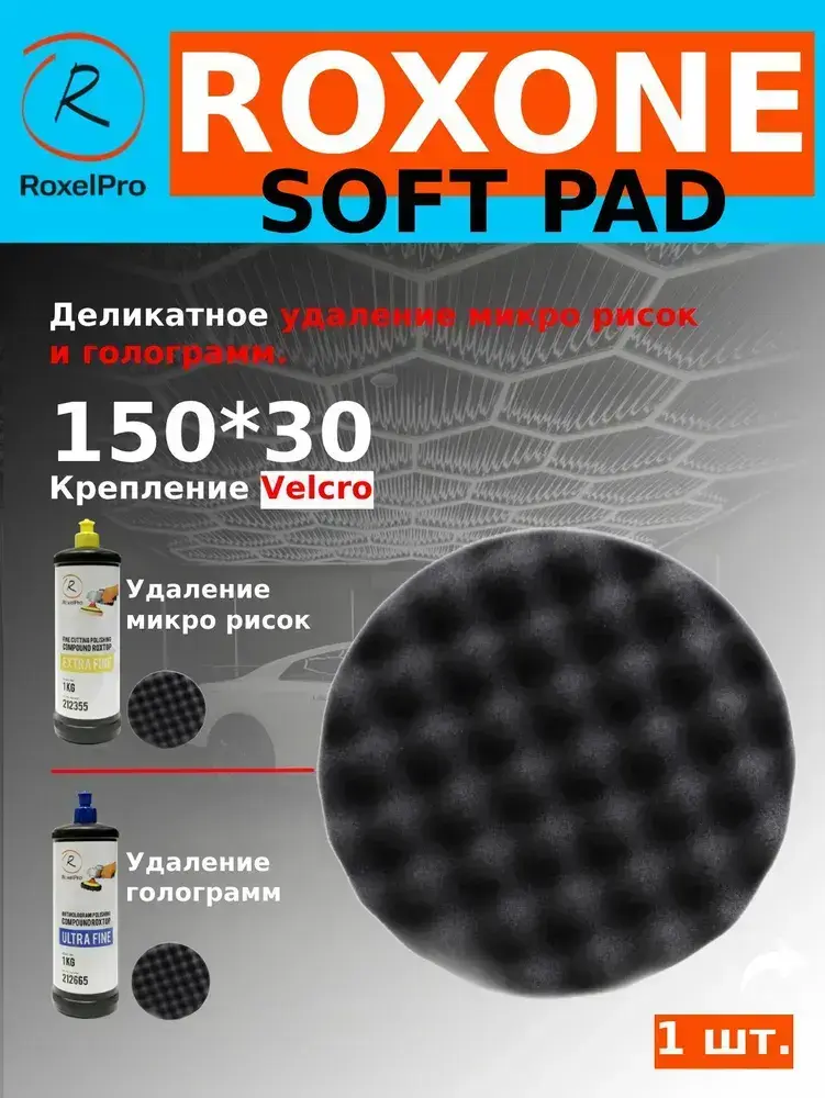 Полировальный круг поролоновый, диаметр: 150х30мм на липучке, мягкий, рифлёный