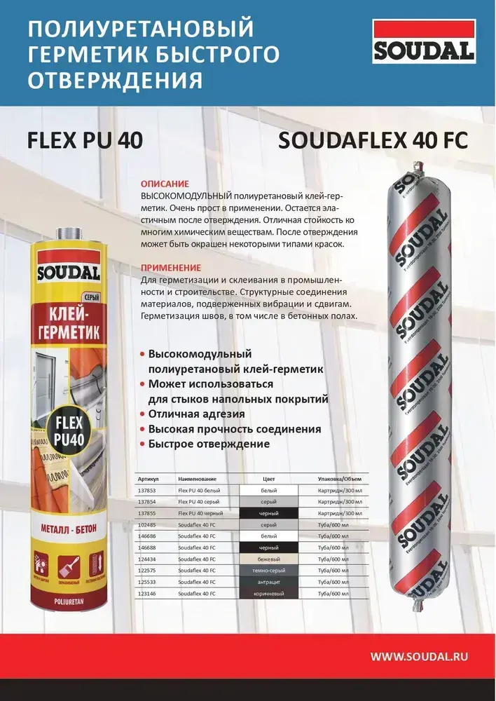 Полиуретановый клей-герметик Soudal (Соудал) Soudaflex 40 FC черный 600 мл