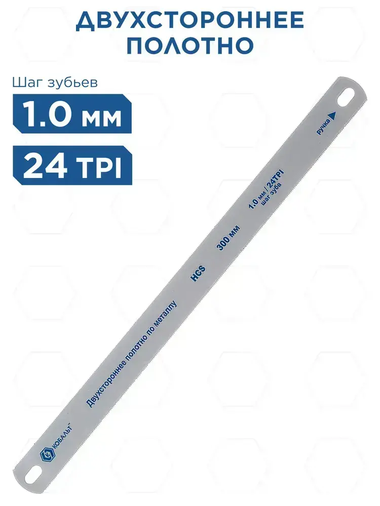 Полотна ножовочные по металлу КОБАЛЬТ 300 мм, двухсторонние, шаг 1.0 мм/24TPI, HCS (2 шт)