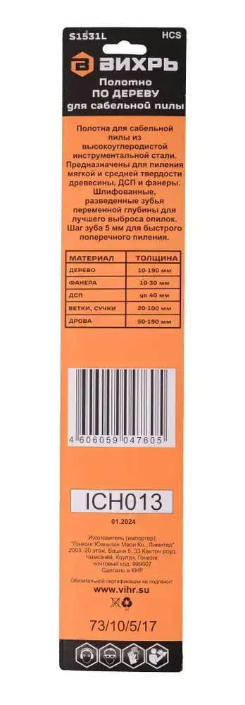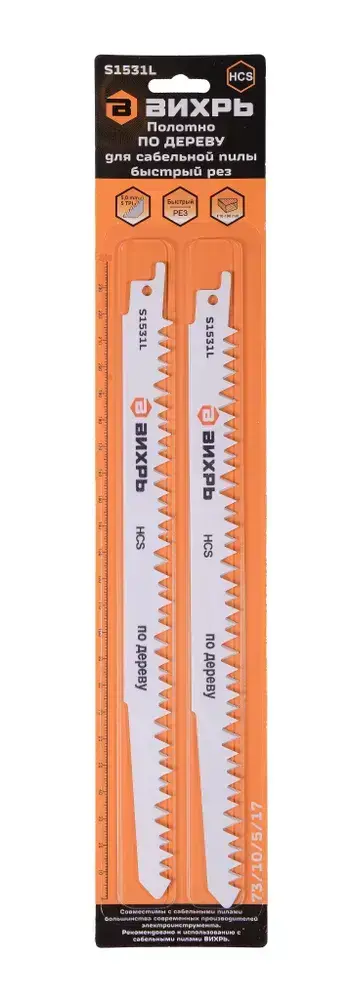 Полотно (пилка) для сабельной пилы S1531L по дереву 240мм (2 шт) Вихрь