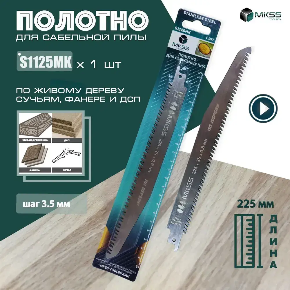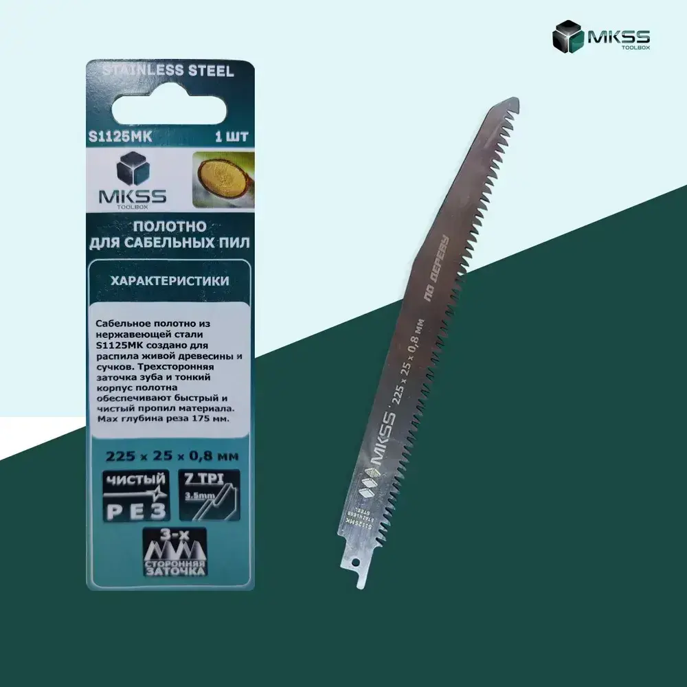 Полотно по живой древесине для сабельной пилы, пилки для сабельной пилы 225 мм/0.8 мм, 1 штукa, S1125MK, MKSS